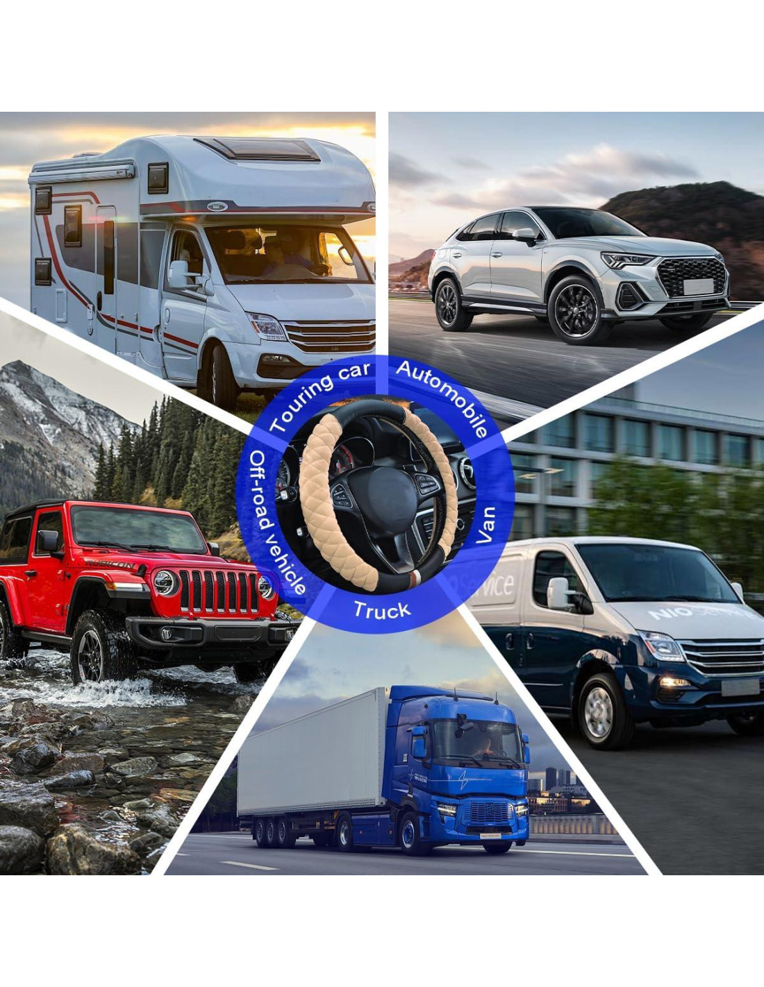 - Tamaño Universal: El diámetro de esta cubierta de volante de coche es de 38 cm (15 pulgadas). Es compatible con diferentes modelos de volantes medianos de coche, ya sea que conduzcas un sedán, crossover o autocaravana, esta cubierta de volante te proporcionará un agarre cómodo. Por favor, mide el tamaño con precisión antes de comprar para asegurar un buen ajuste.