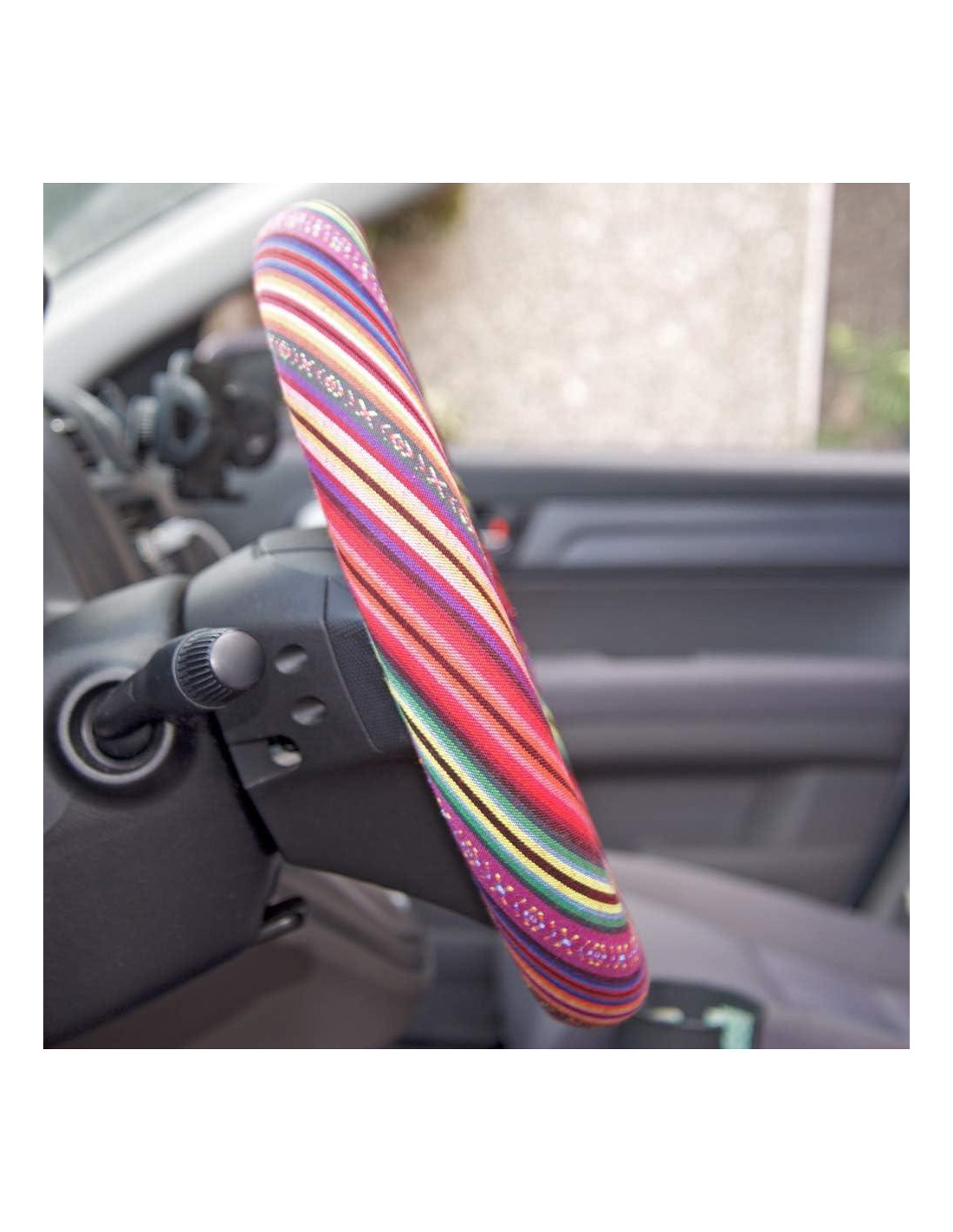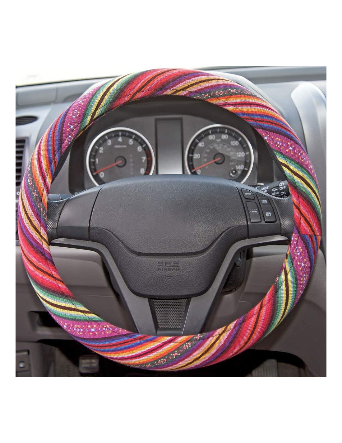 Nuestra cubierta de volante tejida con diseño colorido está diseñada para ajustarse perfectamente a volantes de tamaño estándar, de 14.5 a 15 pulgadas (36.8 - 38.1 cm). ¡Parece que alguien la cosió y tejió a mano! Diseñada ergonómicamente para una sensación suave al tacto. Se ajusta a la mayoría de los coches, sedanes, coches compactos, SUVs y más. Todas nuestras cubiertas de volante están diseñadas y licenciadas en EE. UU. (Los Ángeles)