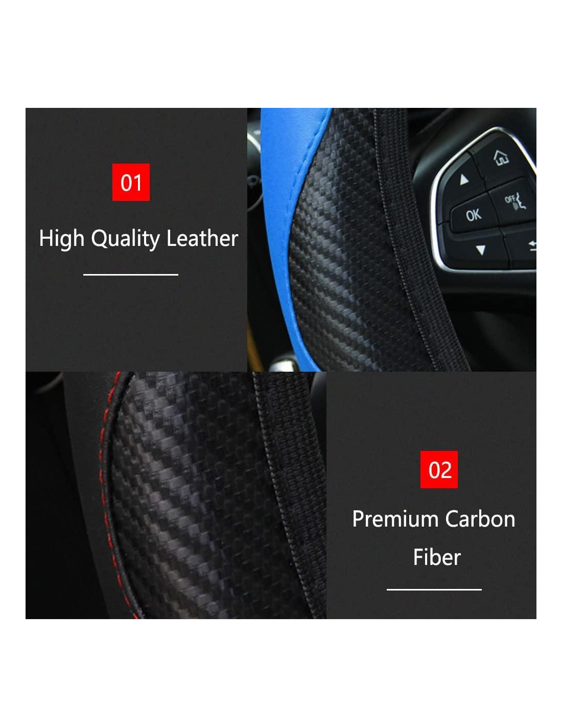 - [Materiales de alta calidad]: El volante del coche está hecho de materiales de cuero de fibra de carbono de alta calidad, y el patrón de cuero de fibra de carbono tejido y moderno es resistente al desgaste, antideslizante, duradero y resistente al desgaste. No hay necesidad de preocuparse por el deslizamiento de las manos al conducir para garantizar la seguridad en la conducción.