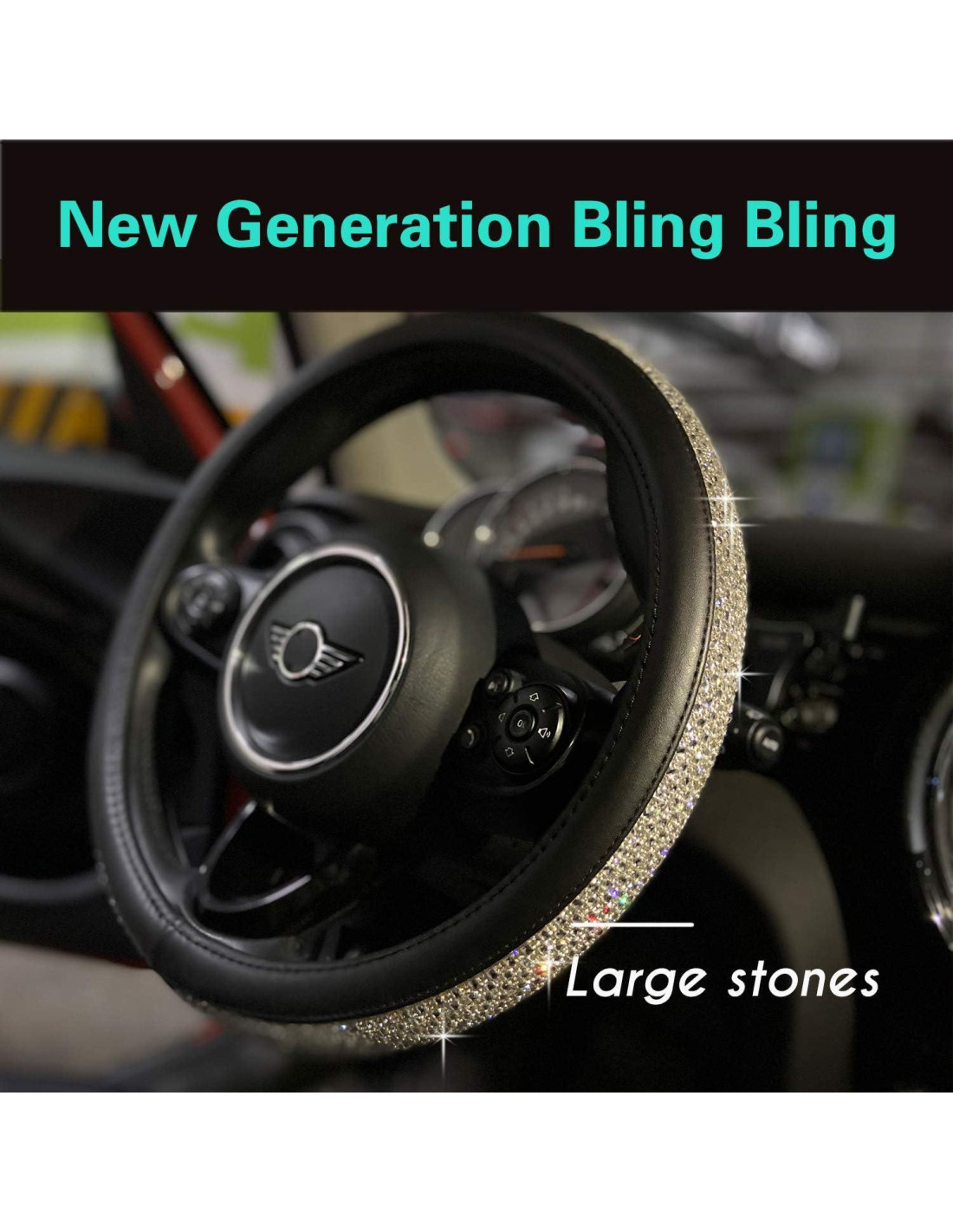 - BUEN AGARRE: Interior de goma antideslizante con textura 3D, sensación al tacto de cristales brillantes. Estas piedras masajearán tu palma y aliviarán la fatiga al conducir, brindándote una gran sensación.