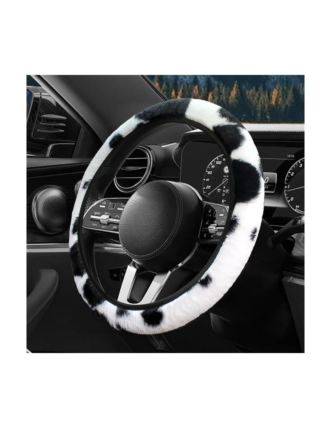 Cubierta de Volante de Coche de Piel de Melocotón -- Toque Sanador, Esencial para Conducir en Invierno Atributos del Producto Colores: Negro, Rosa, Marrón Rango de Diámetro de Volante Aplicable: 14.57-14.96 pulgadas (37-38 cm) Peso: 0.14 oz (0.004 kg) Material: Pelaje Artificial Embalaje: 1* Cubierta de Volante de Coche NOTA: Simplemente mide las dimensiones antes de comprar para asegurar que la cubierta del volante se ajuste perfectamente y no interfiera con la operación del volante cuando esté en uso Características y Funciones del Producto 1. La textura de pelaje artificial es esponjosa y suave, se siente tan cómoda como las nubes, despídete de las manos heladas en invierno, hace que conducir sea más agradable. El fino forro no se caerá y permanecerá limpio y ordenado después de un uso prolongado 2. El diseño de esquema de color de manchas de vaca viene con atributos encantadores, negro, rosa, marrón tres colores para satisfacer diferentes preferencias 3. La banda elástica es fácil de instalar y se ajusta firmemente al volante, por lo que no se deslizará al conducir. Proporciona un agarre suave y protege el volante del polvo y la luz solar