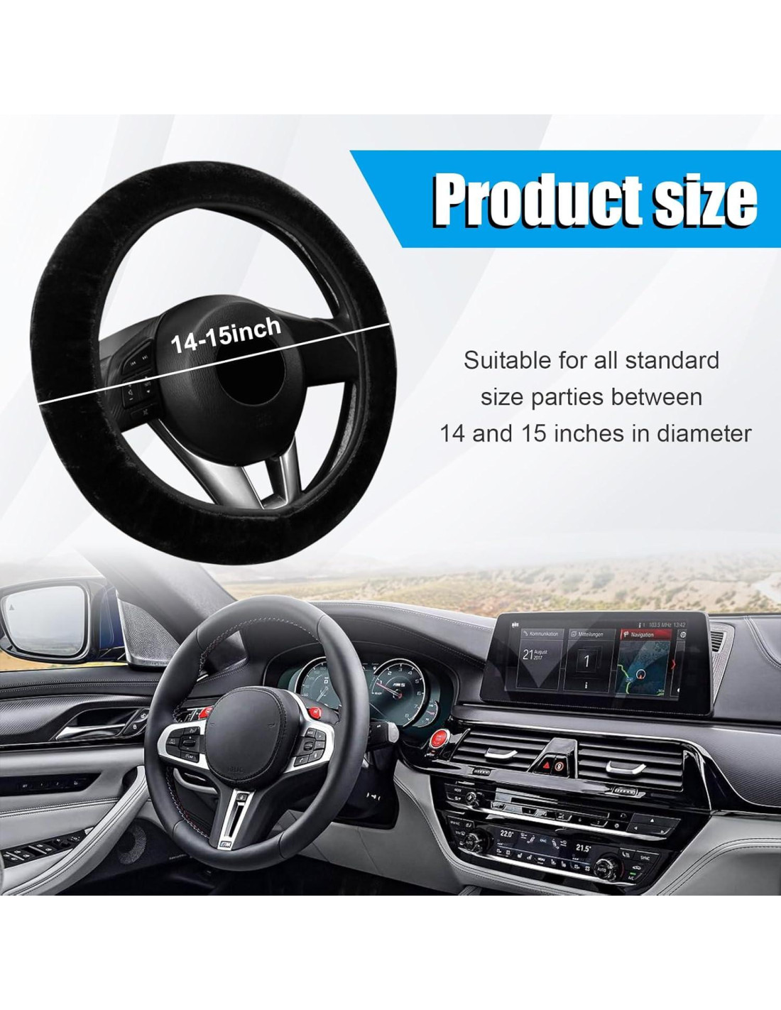 - [Suave y Cálido] : La cubierta de volante está hecha de microfibra de peluche, que brinda a los usuarios un toque delicado y suave. Al usar este producto, los conductores podrán alejarse del frío mientras sostienen el volante. Con su ayuda, los conductores pueden concentrar más su mente en la carretera en invierno.