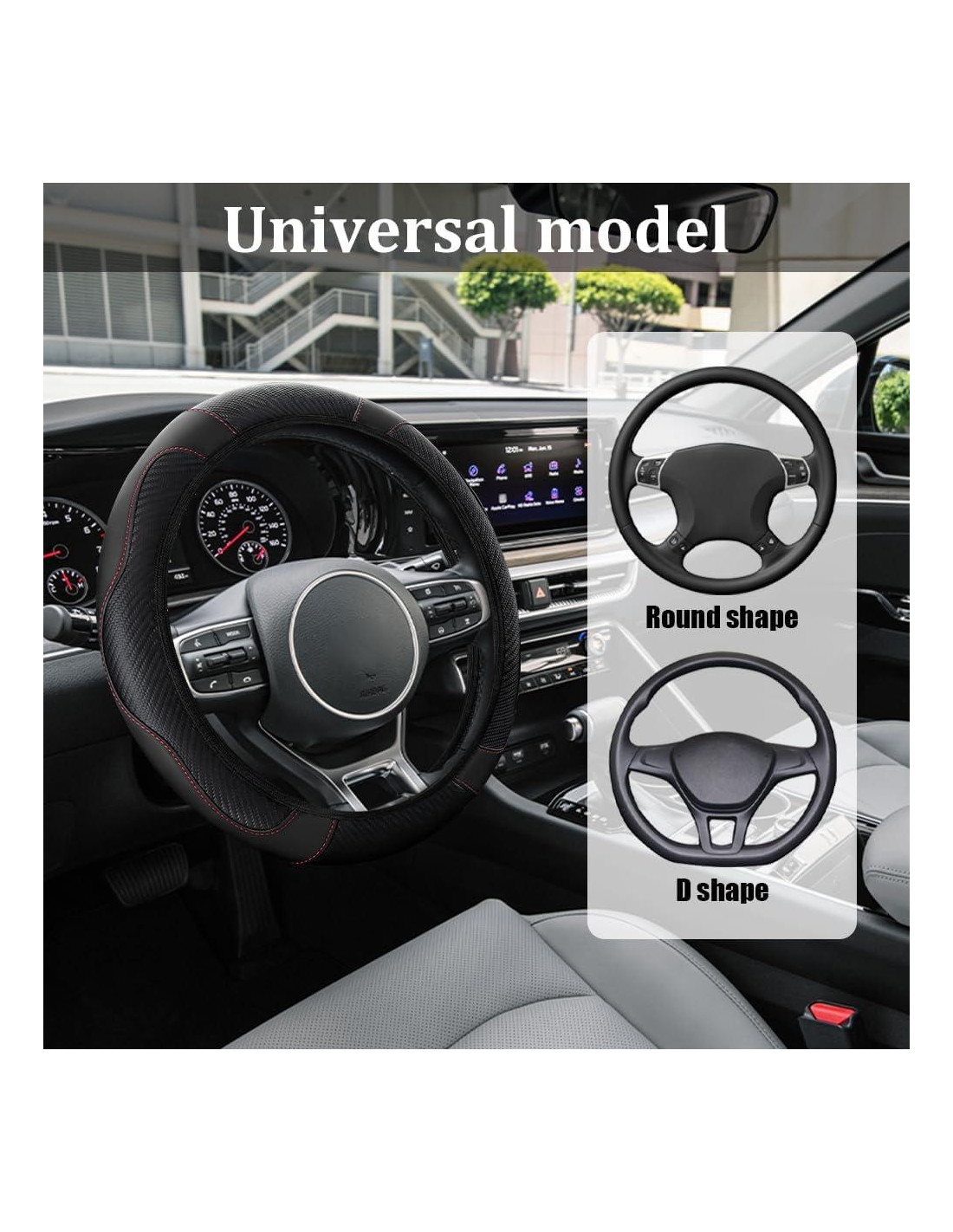 - Uso Amplio: Nuestro protector antideslizante de volante se adapta a volantes redondos o en forma de D con un diámetro exterior de 15 pulgadas (38.1 cm), se puede usar en la mayoría de los coches, sedanes, SUV, furgonetas y camiones, etc. Por favor, asegúrate del tamaño del volante antes de comprar para garantizar la instalación correcta.
