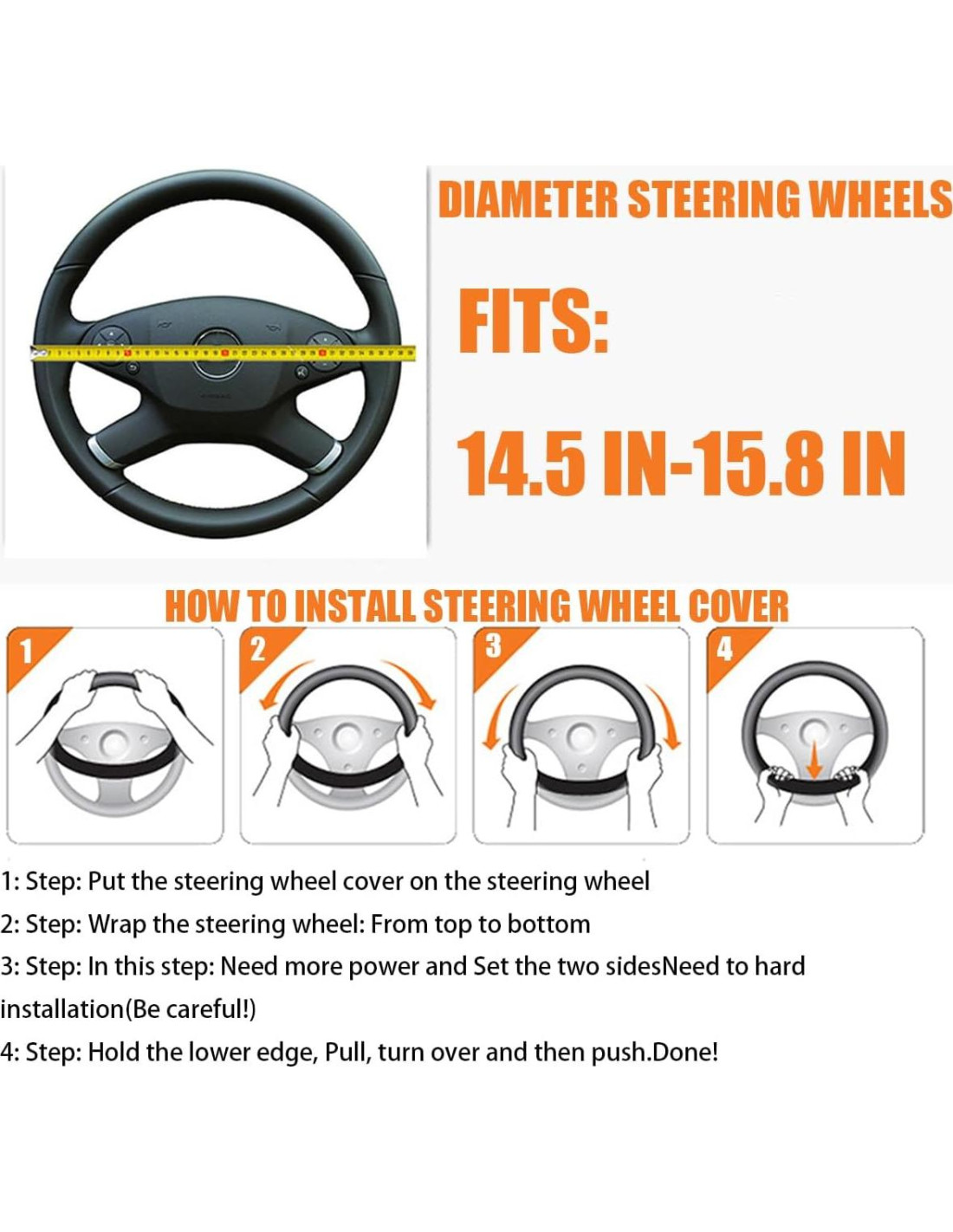 - [Diseño Sin Anillo Interior] Este protector de volante de coche está diseñado sin un anillo interior, lo que facilita el proceso de instalación y reduce enormemente tu esfuerzo. Incluso las personas con muy poca fuerza pueden instalarlo fácilmente. Además, el diseño sin anillo interior significa que el protector de volante es elástico y puede ajustarse mejor a volantes de todas las formas y tamaños sin aflojarse ni deslizarse.