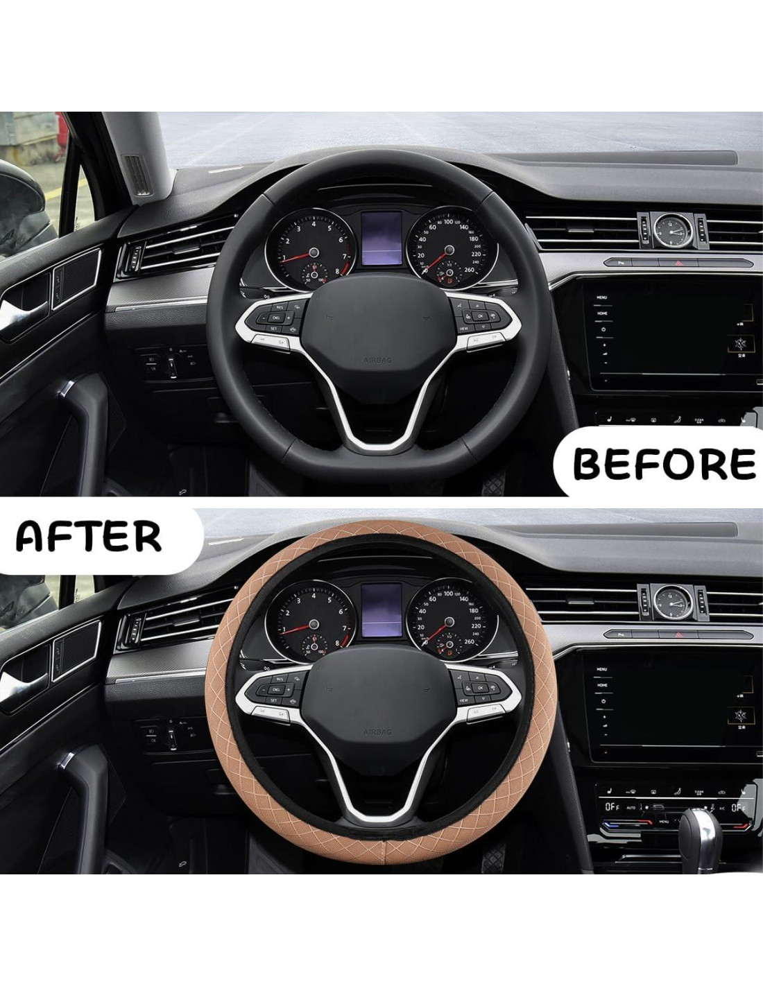 - [Función Práctica] Este protector de volante de coche es multifuncional. Puede proteger tu volante original del polvo, agua, desgaste y más, manteniéndolo con un buen aspecto durante mucho tiempo. Además, su apariencia moderna puede decorar bien tu coche y hacer que su interior sea más personalizado.