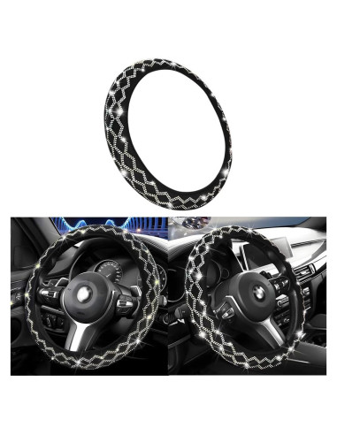 - [De Moda] Esta funda de volante está hecha de respaldo antideslizante y forro de felpa en el material interior, el exterior está hecho de un diseño de cristales de moda, el diseño continuo de diamantes la hace única y moderna, lo que puede atraer inmediatamente la atención de los demás. Es súper brillante, cómoda al tacto, no raspa tu mano y tiene un buen efecto antideslizante. No solo te brinda una excelente sensación visual, sino que también alivia tu fatiga al conducir.