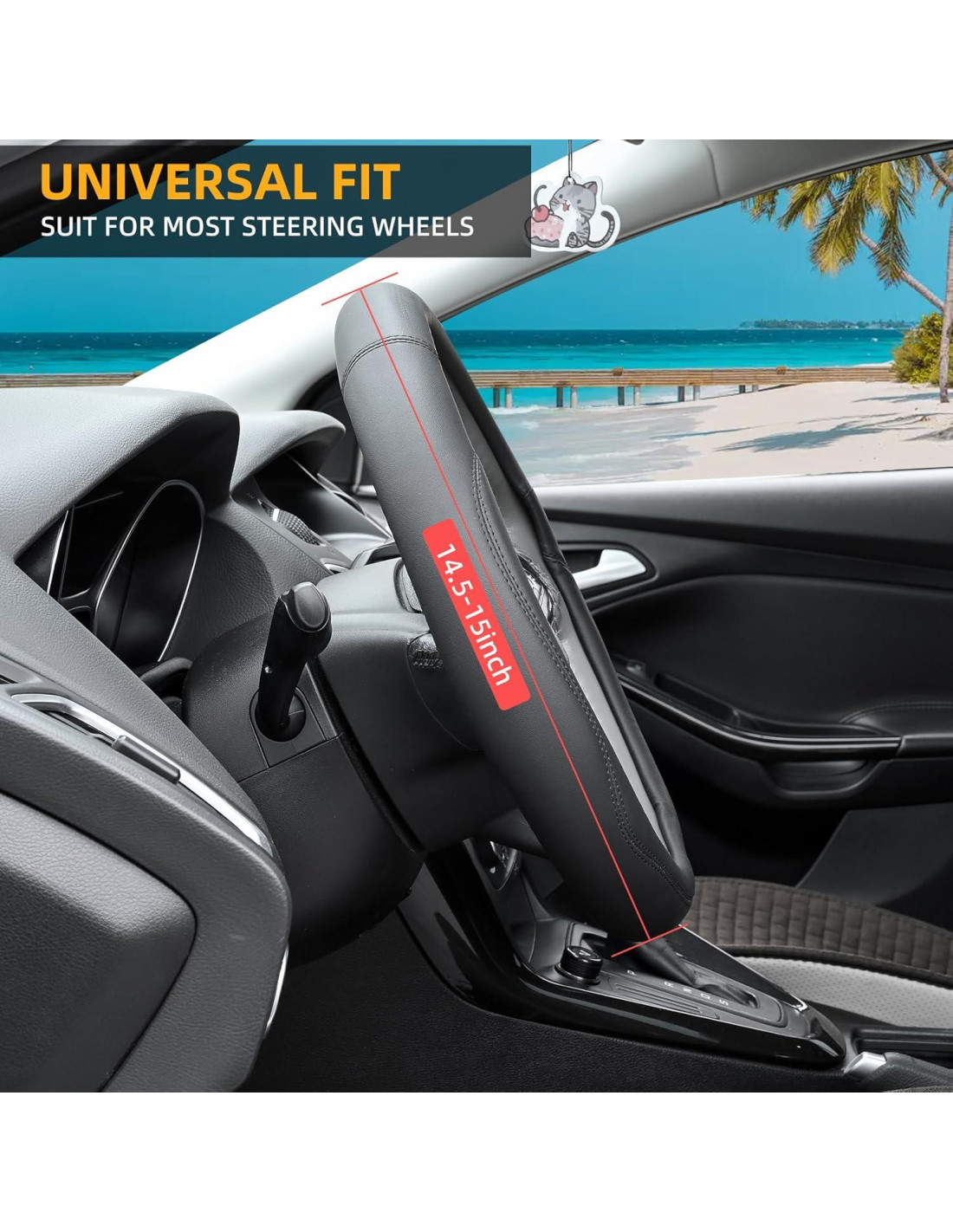 - Alta Calidad: Hecho de funda de volante de microfibra de cuero de alta calidad, suave, transpirable y cómoda al tacto