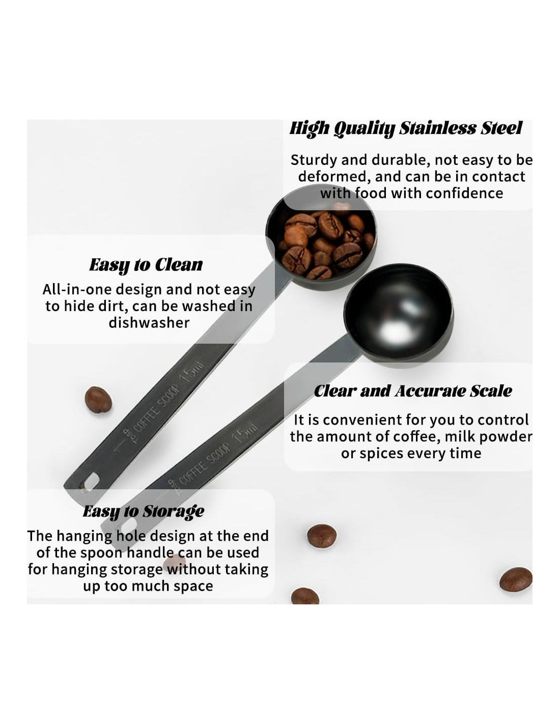 El mango de la cuchara de café está claramente graduado y es cómodo de sostener, 1 cucharada (15ml) le permite medir con precisión granos de café, leche en polvo y especias. La superficie pulida de la cuchara es fácil de limpiar y también es apta para lavavajillas.