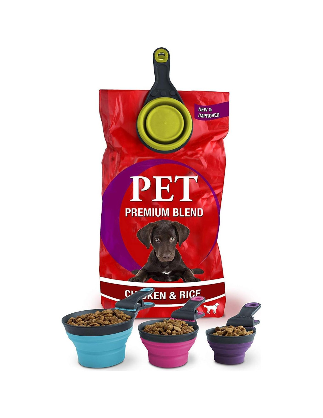- DISEÑO 3 EN 1 Cucharón Klip: Combina la funcionalidad de una taza medidora, cucharón para comida y clip para bolsa en una herramienta conveniente, reduciendo el desorden en tu arsenal de cuidado de mascotas.