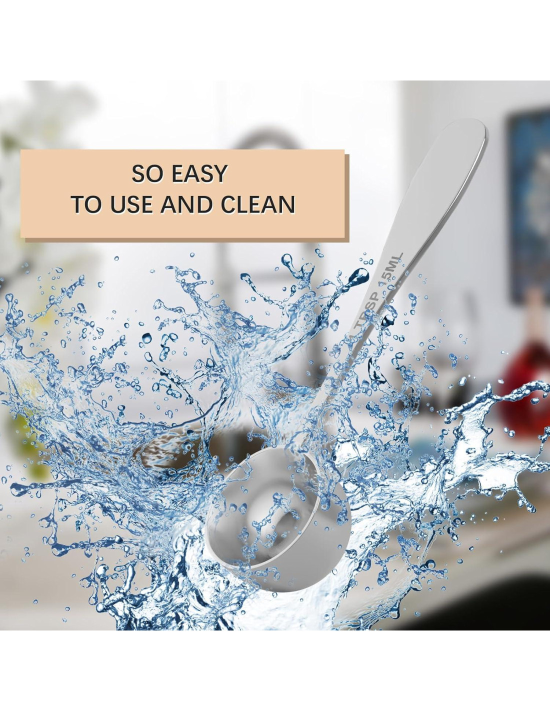 - Escalas Precisas: La cuchara medidora es tan precisa que puede ser el compañero perfecto para tu cocina. La cucharita tiene una escala clara en el mango en sistema estadounidense y métrico. 1 cucharada | 15 ml