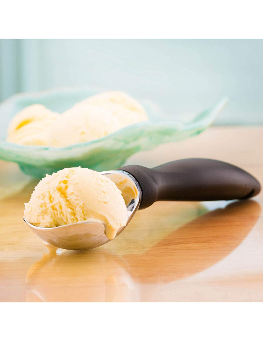 - Avanza a través del helado como si fuera mantequilla - Se desliza suavemente y fácilmente a través de dulces congelados compactos. Parecerá que el helado fluye directamente hacia la cuchara y cae en tu tazón o cono con poco o ningún esfuerzo.