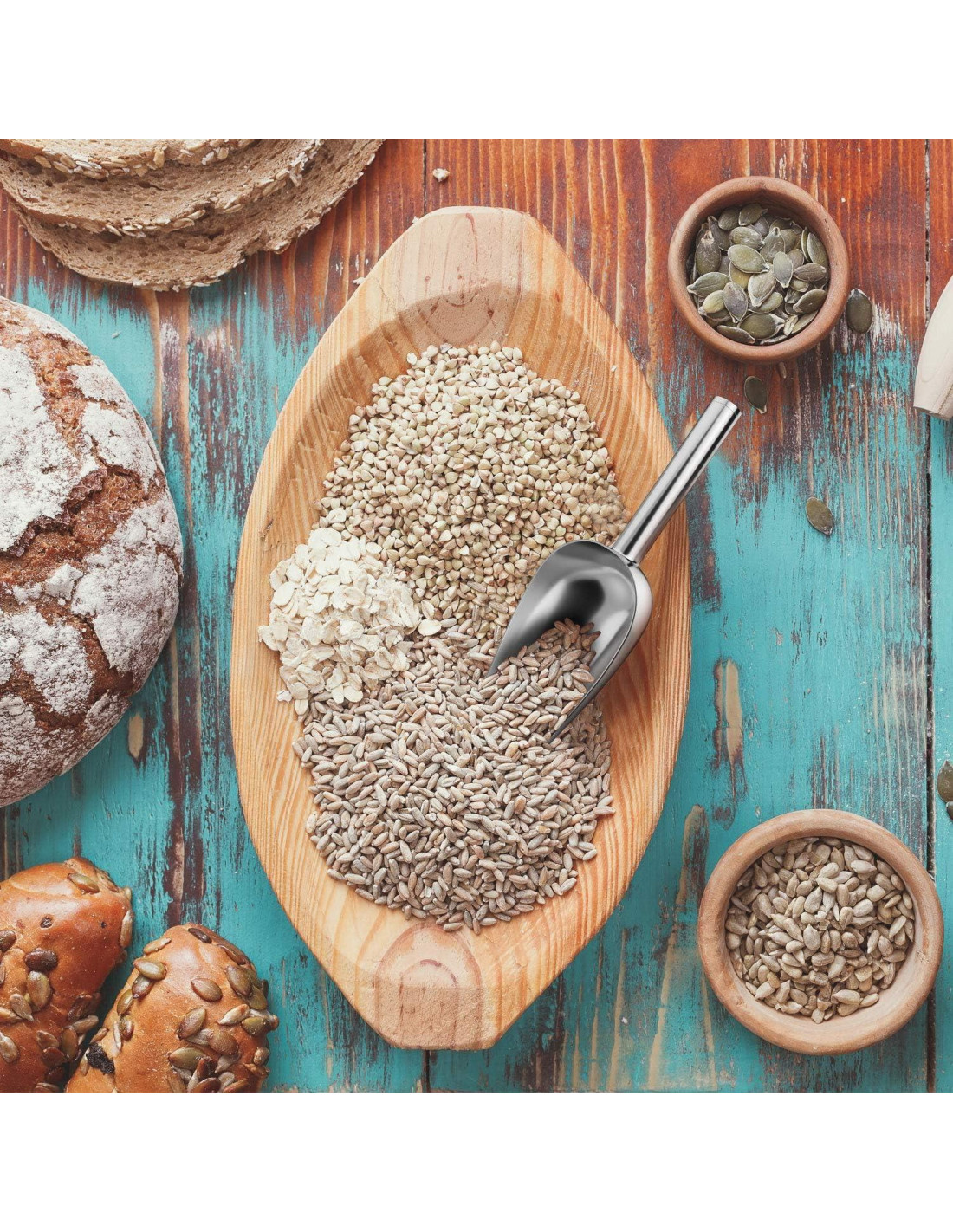 - Amplias aplicaciones: el cucharón de acero es adecuado tanto para uso en cocina como en tienda, se puede aplicar para servir azúcar, granos de café, cubos de hielo, dulces, palomitas, etc.; También puedes usarlo para mascotas como comida para perros o gatos, arena, diversas formas de uso y depende de tu elección.