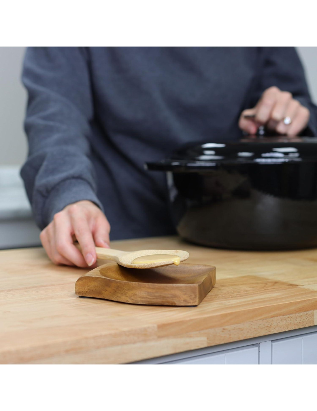 - [Regalo Perfecto]: El moderno soporte para cucharas de madera de acacia añade un toque elegante a las cocinas del hogar o en casas rodantes y campistas; El soporte para cucharas es perfecto para despedidas de soltera, bodas, cumpleaños o para el chef en tu vida