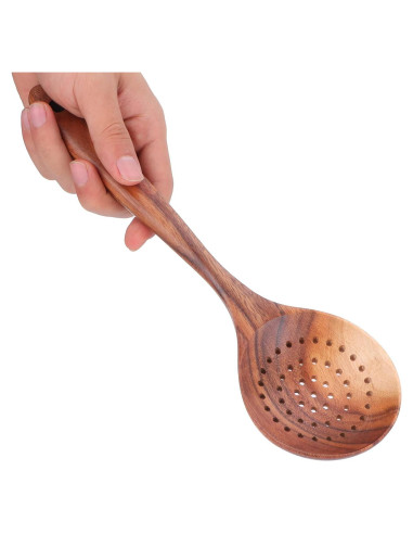 - Tamaño básico: El tamaño de la cuchara ranurada de madera es de aproximadamente 28x8cm (11.0x3.1pulgadas), te ayuda a cocinar mejor los alimentos