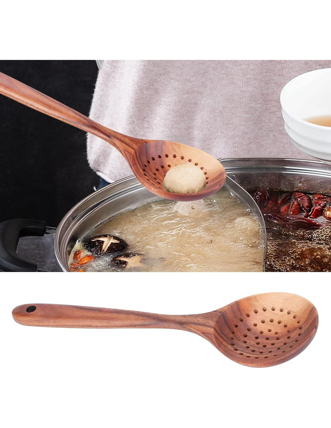 - Fácil de limpiar: Las cucharas ranuradas para cocinar, la cuchara de madera recomienda un enjuague rápido y completo, limpiar con un paño jabonoso