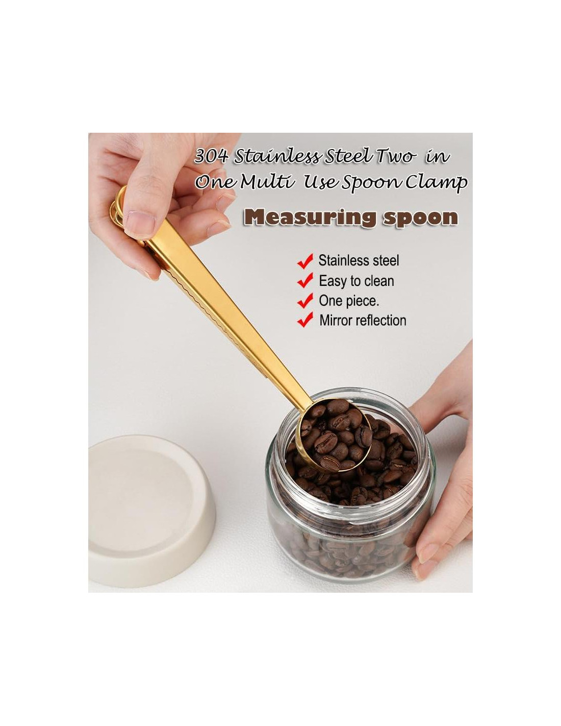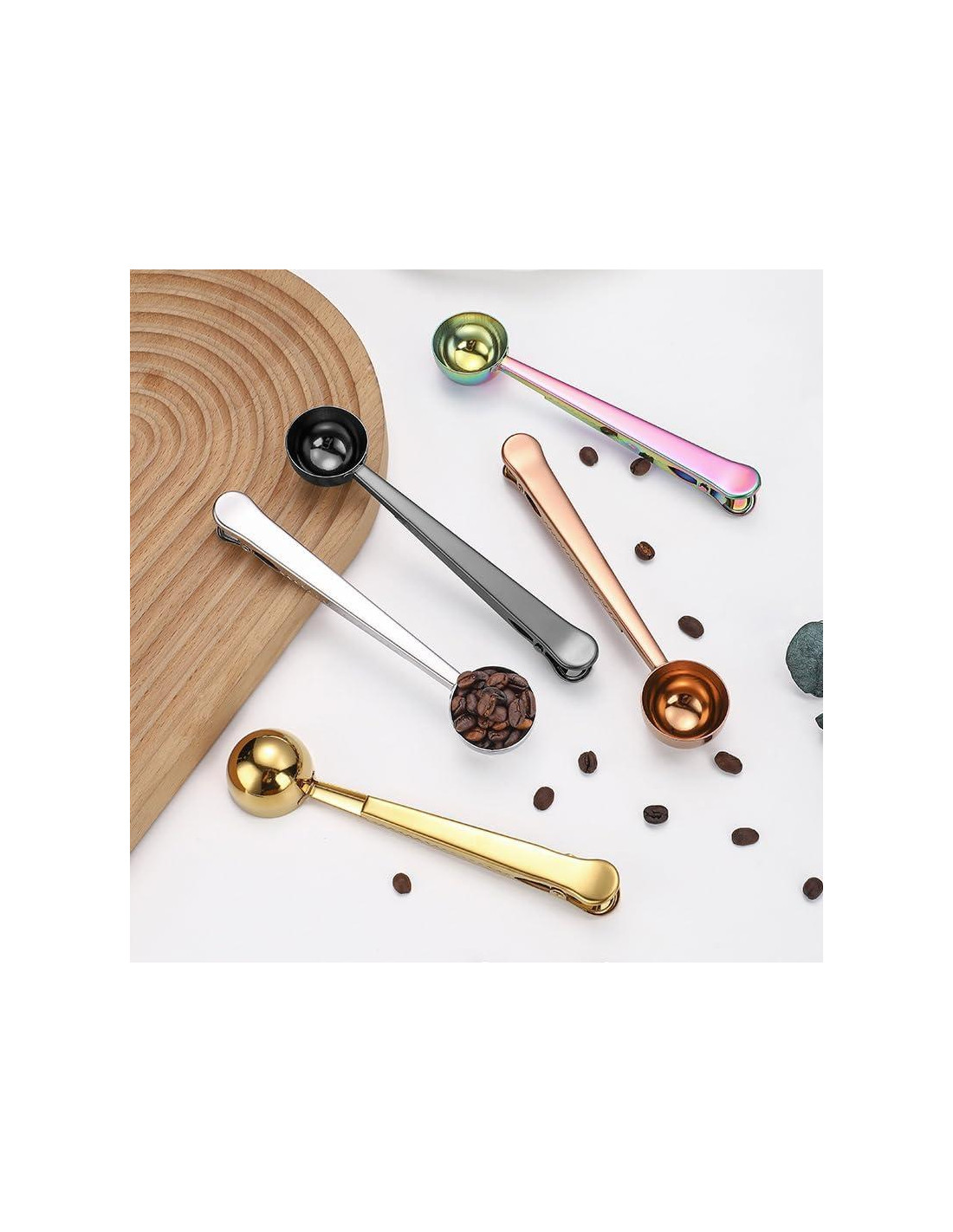 - [Diseño innovador 2 en 1] - Cuchara de café con clip, sellada después de su uso, para mantener el café saludable, fresco, buen sabor, clip de sellado con resorte fuerte, sellado más firme, no fácil de deslizar. También es ideal para sacar granos de café, café en polvo, cacao en polvo, té, azúcar, especias o leche en polvo. Una amplia gama de usos para satisfacer tus diferentes necesidades, un artículo imprescindible para cada familia.