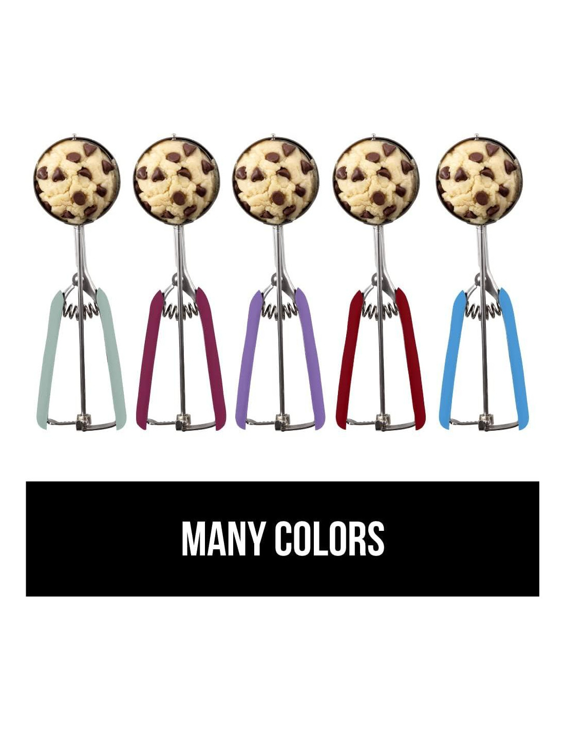 - CUCHARONES UNIFORMES: ¿sabías que los tamaños de cucharón son universales?; el cucharón #30 tiene una capacidad de 2 cucharadas y produce galletas perfectas de 3 pulgadas (7.62 cm) que parecen compradas en la tienda, así que puedes lograr la porción perfecta cada vez; compra todos los tamaños