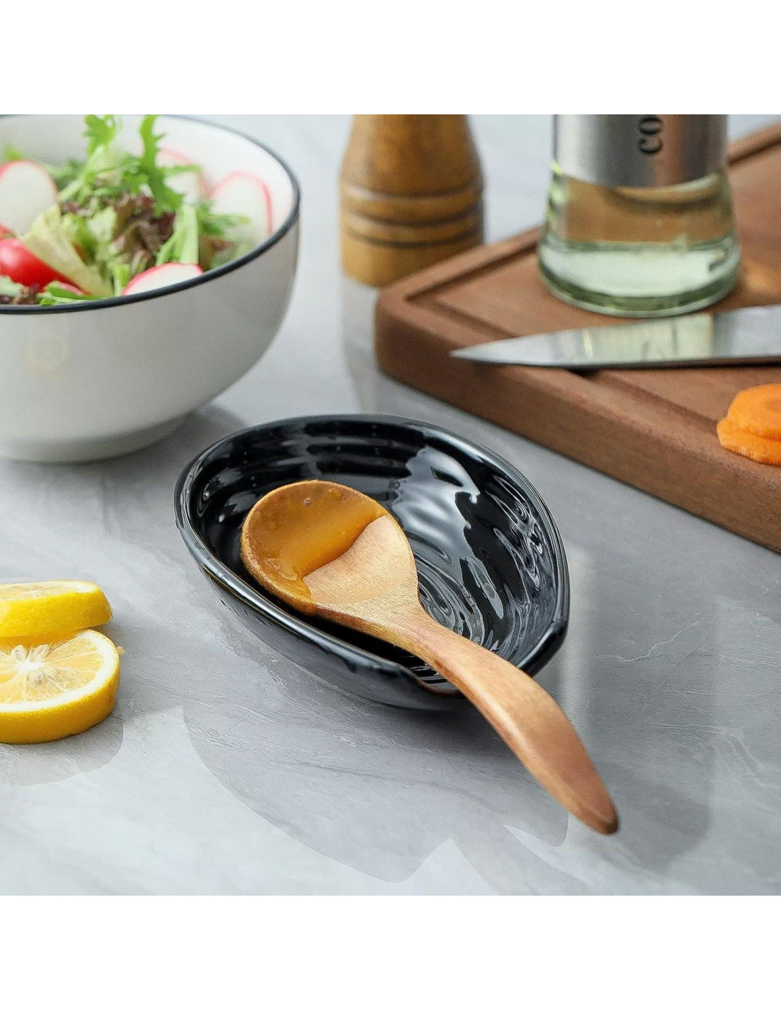 - MENOS DESORDEN Y MENOS SUCIO: El soporte para cuchara negro es un artículo útil para el limpiador. El soporte de cerámica para cuchara puede ahorrarte tiempo en la limpieza constante de la espátula y la cuchara sucias. Este soporte para cuchara de cocina te asistirá en todas las actividades de cocina sin desorden, y hace que tu vida en la cocina sea más fácil.