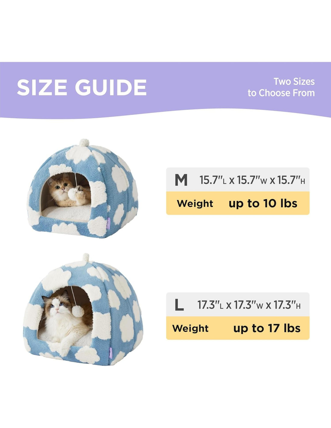 - Características Versátiles: Configure esta tienda para gatos como una fortaleza de comodidad para felinos o aplánela para transformarla en una cama de mascotas suave. Un juguete en forma de bola colgante en la entrada proporciona entretenimiento juguetón a su felino en su acogedor refugio.