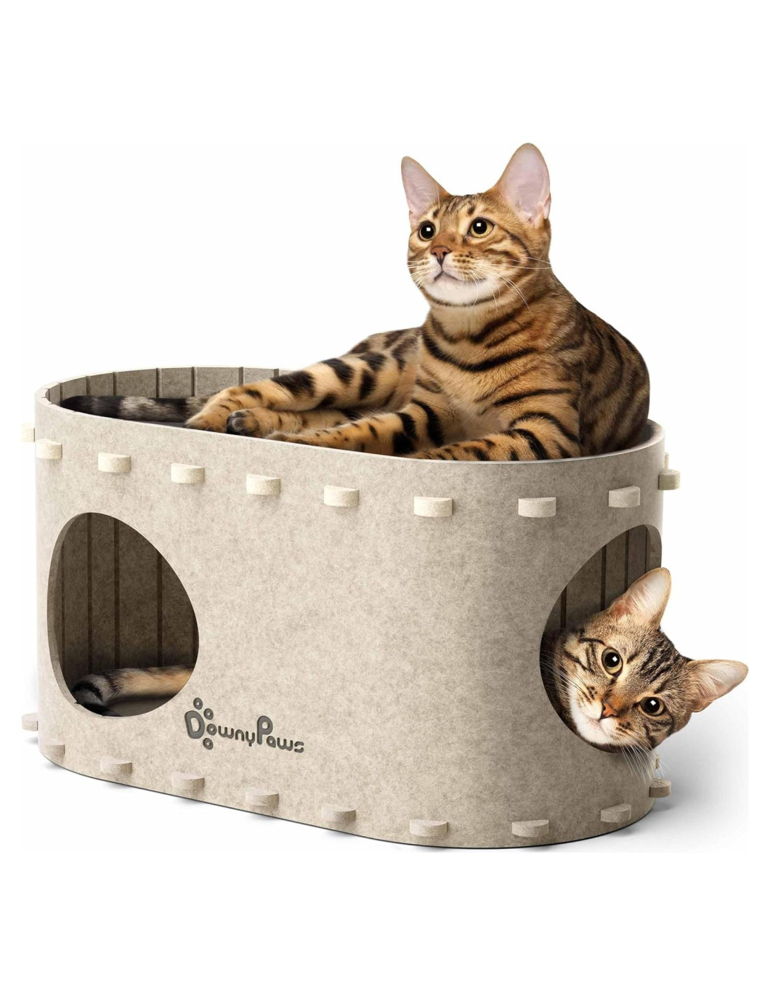 - Comodidad Dos en Uno: Las Casas para Gatos PeekaPurr de DownyPaws son un refugio que combina sin esfuerzo relajación y juego. Con espacios designados para siestas reparadoras y emocionantes aventuras, satisface las diversas necesidades de tu gato, asegurando una experiencia de comodidad dos en uno. Con versatilidad para todas las estaciones, la Cueva para Gatos PeekaPurr proporciona un santuario acogedor en invierno y una escapada fresca en verano, ofreciendo disfrute durante todo el año para tu compañero felino.