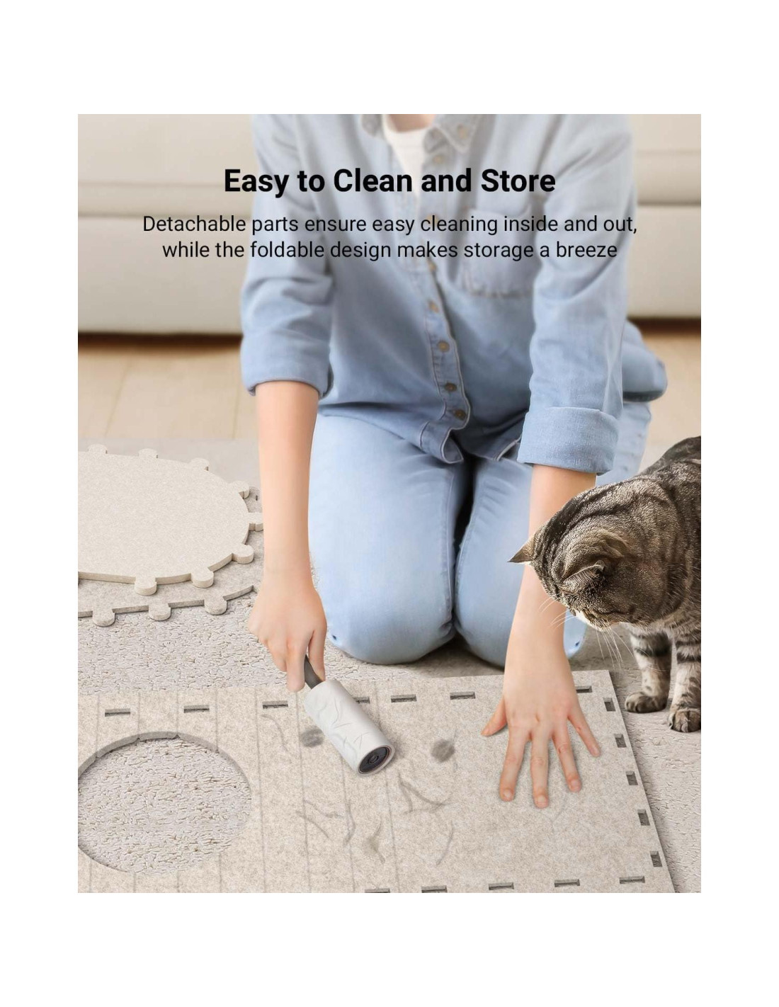 - Fácil Montaje, Limpieza Sin Esfuerzo y Almacenamiento Portátil: PeekaPurr prioriza la conveniencia del usuario, ensamblándose y plegándose fácilmente para almacenamiento o viaje. Con partes desmontables, mantener un refugio higiénico para gatos es muy sencillo: simplemente usa una aspiradora o rodillo para una limpieza rápida. Mantén el entorno de tu gato impecable con un esfuerzo mínimo.