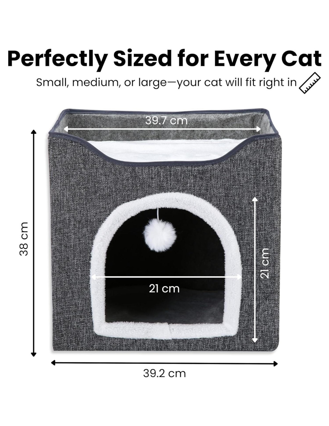 - Comodidad para Todas las Temporadas - Cálido en Invierno, Fresco en Verano - El fieltro aislante mantiene a los gatos cálidos y cómodos durante los meses fríos mientras regula naturalmente el flujo de aire para mantenerse fresco en climas más cálidos. Esto la convierte en el lugar perfecto para dormir y descansar durante todo el año para tu gato, gatito o incluso mascotas pequeñas como cachorros y conejos.
