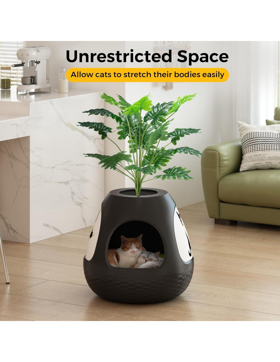 - [Cueva para Gatos Todo-en-Uno con Vegetación] : Combina una acogedora cueva para gatos, rascadores y una planta artificial en una unidad elegante. Esta cueva para gatos con planta superior se integra sin esfuerzo en la decoración moderna de tu hogar mientras crea una vibra natural y tranquila tanto para los gatos como para ti.