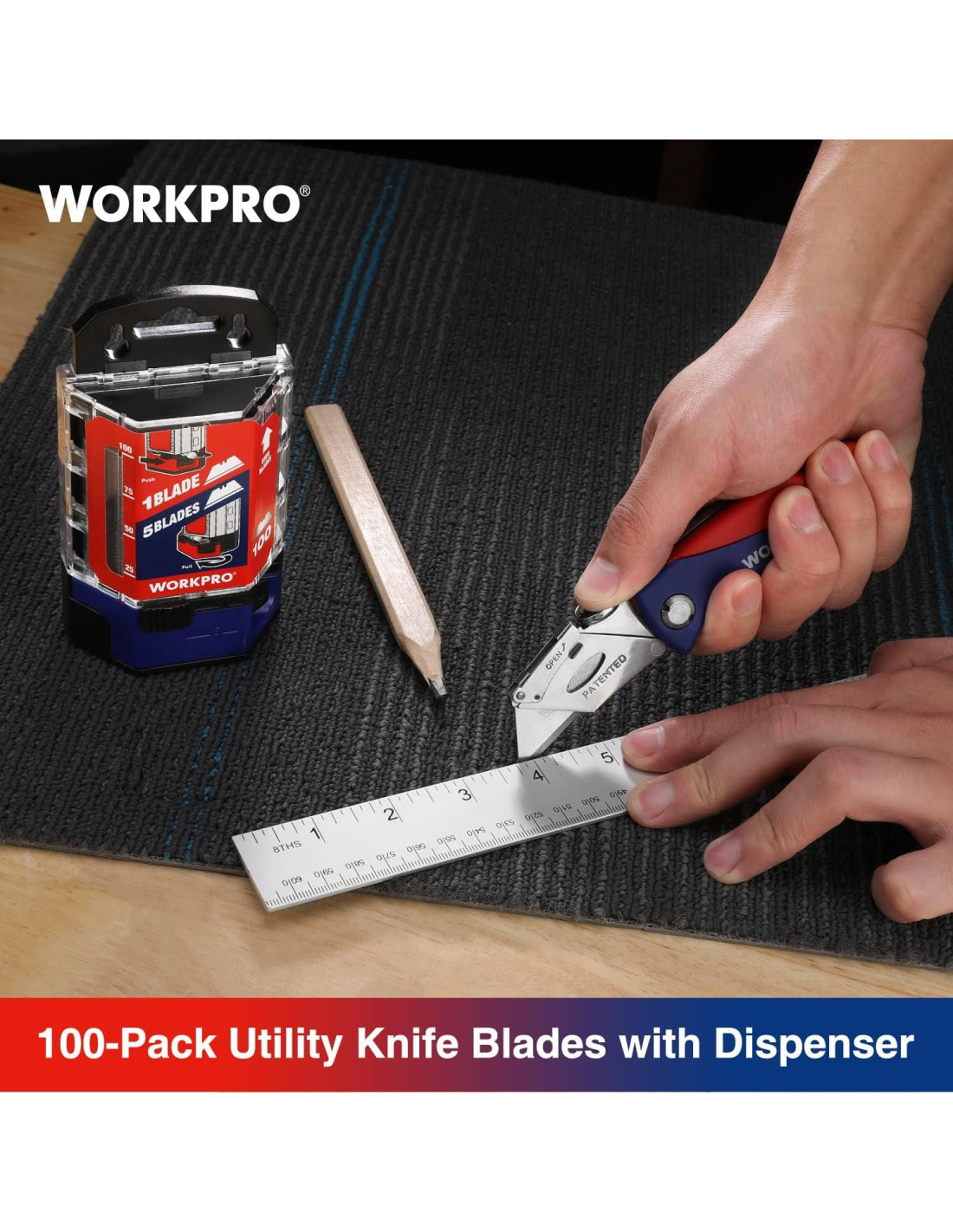 - Amplia Aplicación: Las cuchillas de repuesto para cuchillo utility de WORKPRO son excelentes para cortar una variedad de materiales, como cartón, cuero, alfombra, paneles de yeso, sheetrock, linóleo, cuerda, metal blando, tubería y papel, y son adecuadas para la mayoría de los Proyectos de Hágalo Usted Mismo