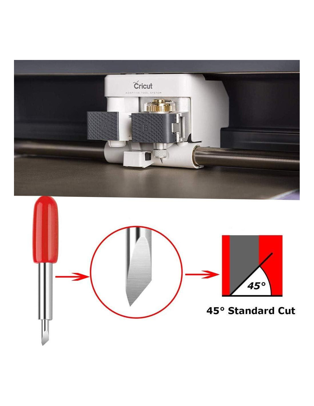 - [Atención a Accesorios Cricut] - Estas cuchillas de exploración no pueden ajustar automáticamente la profundidad necesaria para cortar, y todas las cuchillas deben ajustarse manualmente para establecer la longitud de la punta de ángulo de acuerdo con los diferentes tipos de cuchillas o diferentes materiales de corte. Por favor, prueba el efecto de corte después de establecer la profundidad de corte adecuada.