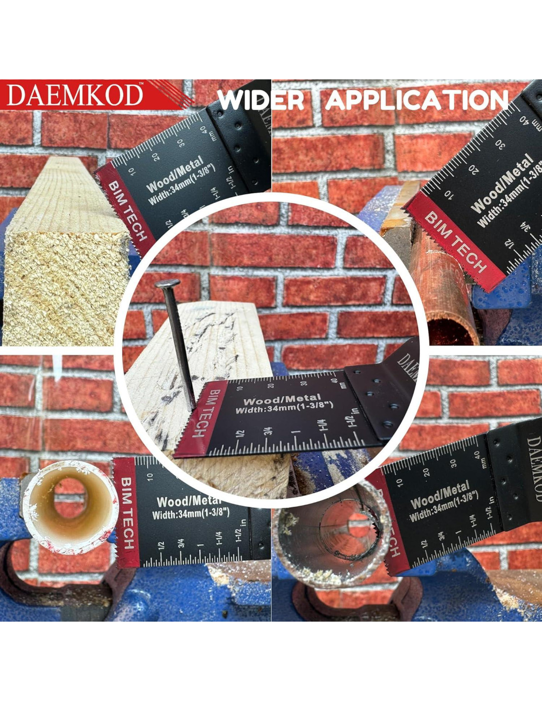 - [Dientes de bi-metal y recubrimiento de alta calidad] Los dientes de las cuchillas multitool bi-metal de 55 Pcs no solo están hechos de bimetal de alta calidad, sino que también utilizan un recubrimiento de alta calidad, que reduce efectivamente la oxidación y aumenta la vida útil de la cuchilla de sierra.