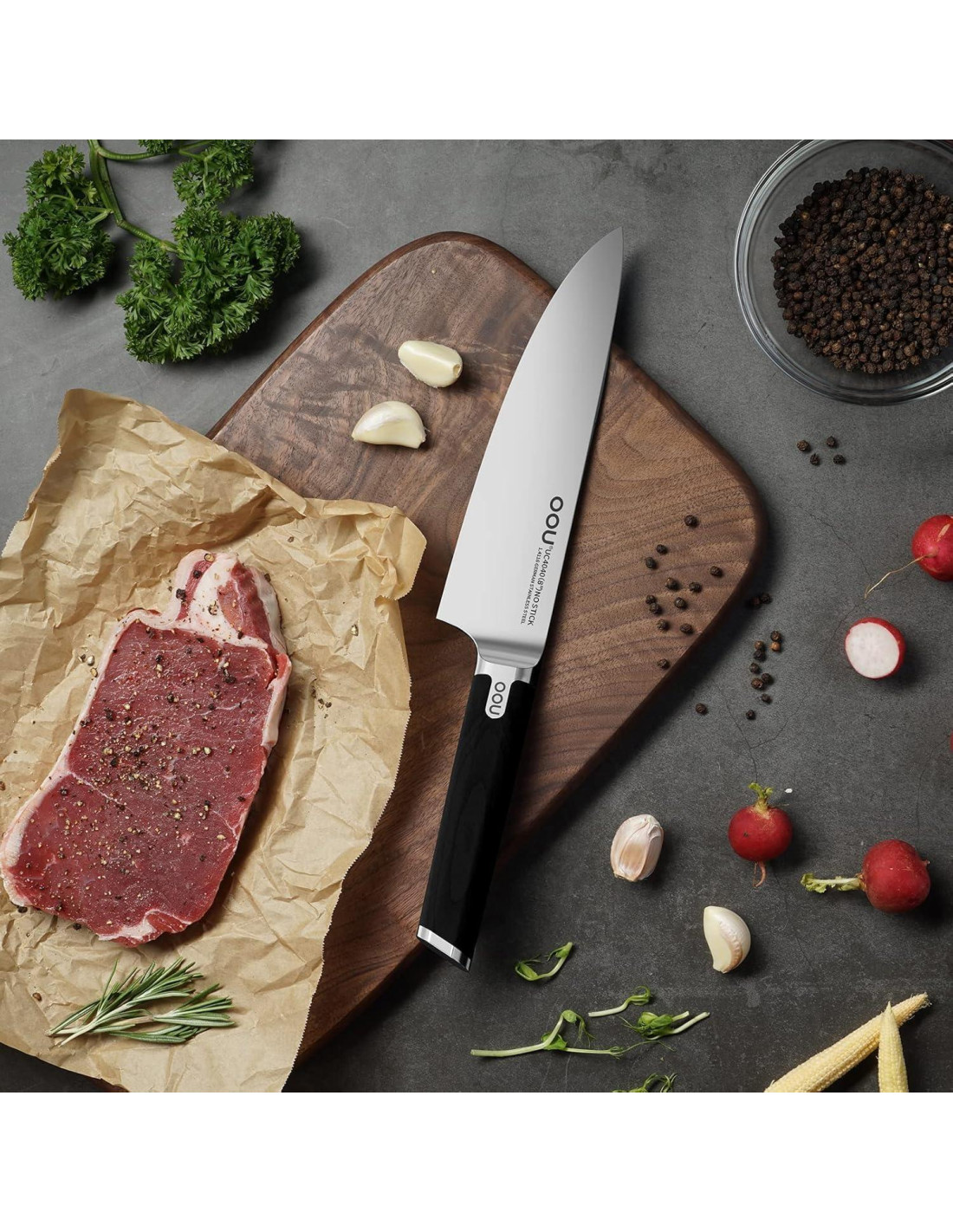 Una autoridad global en cuchillos negros, OOU integra tecnología anti-óxido BO y tecnología de patente de salud OPD. Más de una década en desarrollo, ha emergido como el principal experto en cuchillos negros a nivel mundial. Sus juegos de cuchillos, que cuentan con bases de madera y tecnología de cuchillos negros, son apreciados por chefs profesionales y hogares en múltiples países, estableciéndose como una de las marcas de cuchillos negros más reconocidas de hoy en día. Los cuchillos OOU están hechos de acero inoxidable alemán de alto carbono EN1.4116 de primera calidad con alta resistencia y rigidez aumentada. ¡Corta todo como mantequilla! La hoja ultra afilada está diseñada específicamente para tareas de cocina como picar, cortar, trocear y rebanar. Este cuchillo de chef profesional de 8 pulgadas puede manejar fácilmente tus tareas diarias de cocina de picar, rebanar, trocear y cortar frutas, verduras y varias variedades de carne. Realmente es el cuchillo de cocina todo en uno. Procesado con la tecnología de pulido única y el método de afilado de 4 secciones que, combinado con las habilidades de Japón y Alemania, hace que el cuchillo sea extremadamente afilado con un ángulo de corte de menos de 16 grados y robusto etapa por etapa. Mejor lavado a mano, duradero y de larga duración. Secar inmediatamente después de lavar. Afile la hoja periódicamente. Manténgalo seguro. Juego de cuchillos OOU con bloque. Juego de cuchillos OOU con bloque. Juego de cuchillos OOU con bloque. Juego de utensilios de cocina OOU. Olla de hierro fundido OOU.