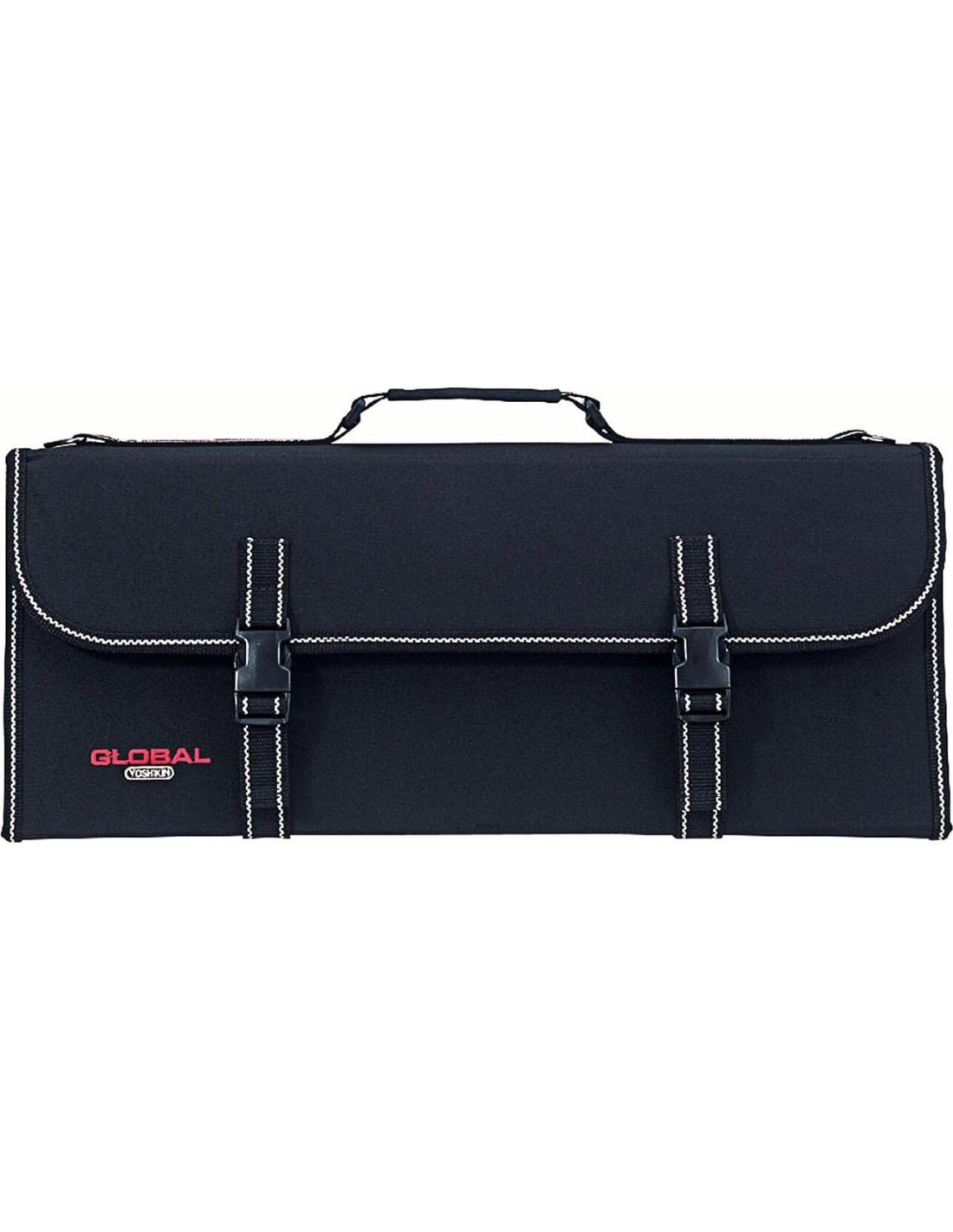 El Caso de Cartera de Cuchillos Global mantiene tus utensilios más preciados protegidos y listos para el transporte. Caso de cartera de cuchillos profesional y compacto con cremallera y 7 bolsillos. El caso de nylon Denier negro de alta resistencia resiste desgarros y rasgaduras, y presenta costuras blancas como un atractivo contraste.