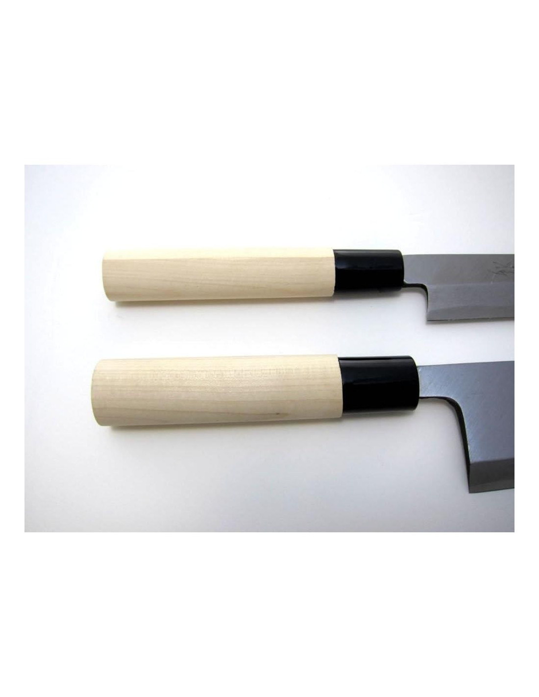 - Tamaño: cuchillo Yanagiba de 8.3" (210mm) de hoja y cuchillo Deba de 5.9" (150mm) de hoja.