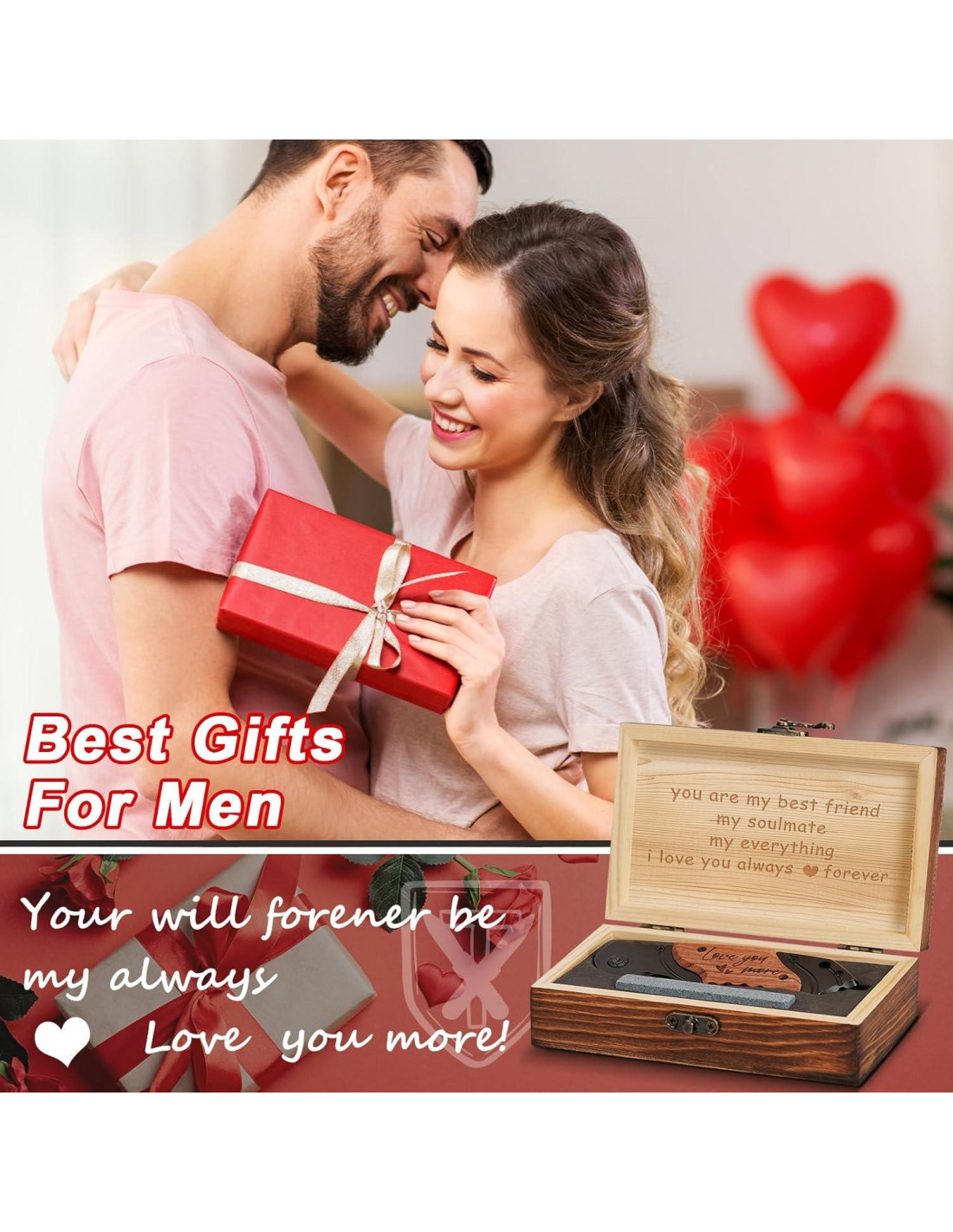 - Regalos Grabados para Él: Las palabras románticas "TE AMO MÁS" están hermosamente grabadas con láser en el clásico mango de madera, asegurando que los grabados sean claros y no se desvanecerán con el tiempo. Haz los mejores regalos personalizados para el esposo de la esposa