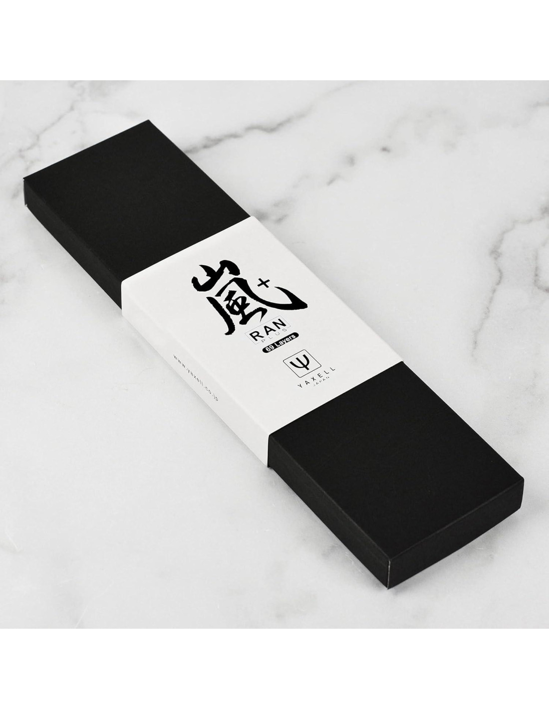 El Cuchillo de Pan Yaxell Ran Plus está diseñado para usar al cortar pan, pasteles, bollería y frutas más grandes con piel dura. Yaxell Ran Plus está construido de acero inoxidable japonés VG10 Cobalto Molibdeno Vanadio con 34 capas de acero inoxidable duro y blando en cada lado, resultando en un total de 69 capas. La superficie impresiona con un fascinante patrón de diseño Damasco. El mango está hecho de resina negra y lienzo Canvas Micarta con dos remaches de acero inoxidable. El material de lienzo está teñido de negro y brillantemente terminado para durar décadas. El extremo grabado del mango está hecho de acero inoxidable 18/10, lo que proporciona una estabilidad y equilibrio excepcionales.