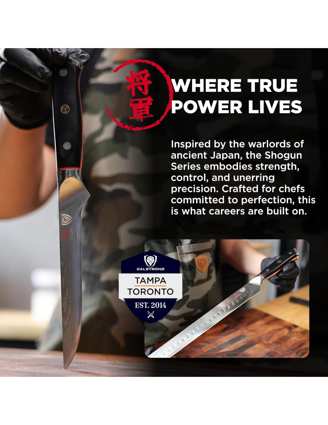 - Carnes de Precisión, Cortes Perfectos: Diseñado para chefs de nariz a cola y entusiastas de BBQ y parrilla, este set de 2 piezas de la aclamada Serie Shogun de Dalstrong presenta un cuchillo de rebanar y tallar de 30 cm y un cuchillo de deshuesar de 15 cm, ambos extremadamente afilados. Ideal para tallar asados, recortar pechugas y descomponer aves o pescado con facilidad.