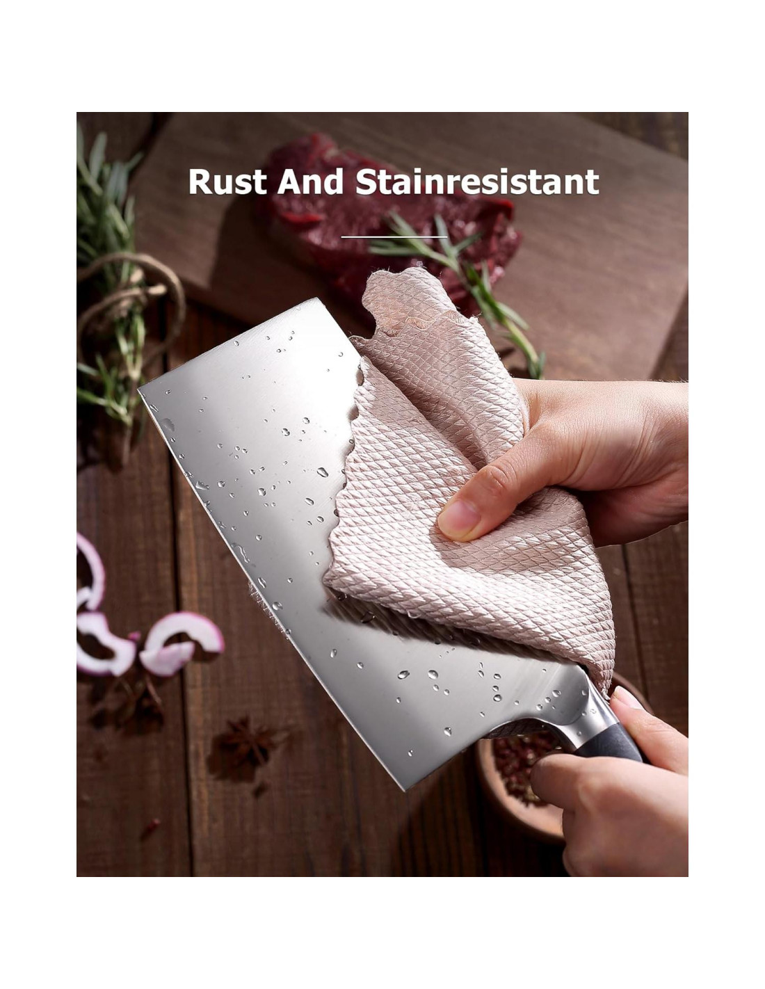 - Cuchillo de Deshuese de Acero Inoxidable de Alto Carbono Forjado: Este cuchillo de cocina chino está hecho de acero alemán de calidad extraordinaria 7Cr17MoV / 1.4116 con una dureza Rockwell de 58+, asegura que el filo de corte afilado dure más tiempo.
