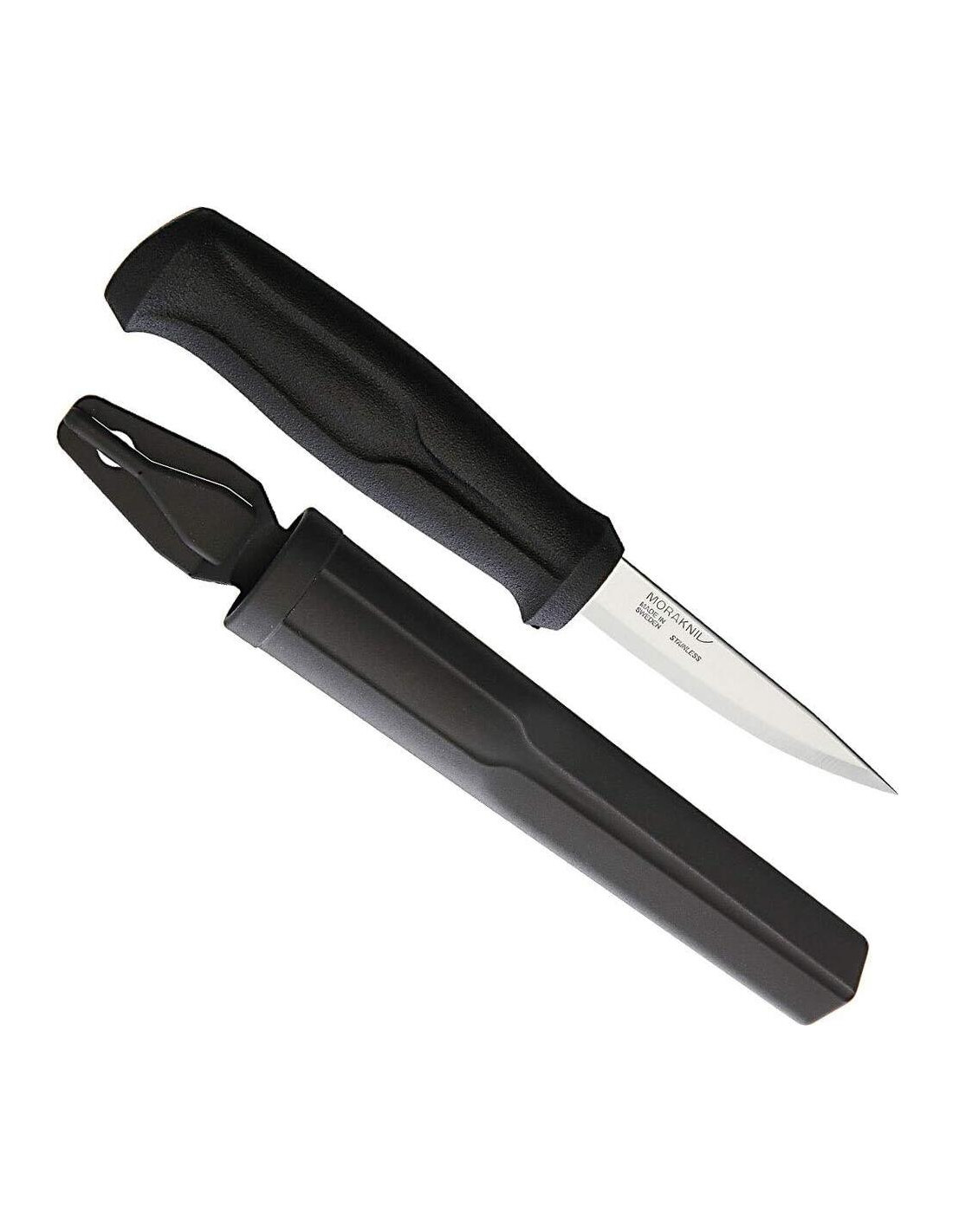 El cuchillo de trabajo para tallar en madera Morakniv Basic es ideal para tallar y esculpir con habilidad y precisión. Los principiantes adorarán el control y la seguridad que proporciona la hoja de acero inoxidable Sandvik de 3 pulgadas, y los carpinteros experimentados apreciarán el equilibrio sofisticado y la afilada hoja lista para usar. El cuchillo de tallado en madera Morakniv Basic cuenta con una hoja delgada de acero inoxidable hecha de acero sueco de primera calidad 12C27 que ofrece un excelente rendimiento de corte, excepcional resistencia a la corrosión y afilado extremo. El mango de plástico diseñado ergonómicamente se siente equilibrado y se asienta cómodamente en la mano. Morakniv ha estado fabricando cuchillos de carpintería de la más alta calidad en Mora, Suecia desde 1891.