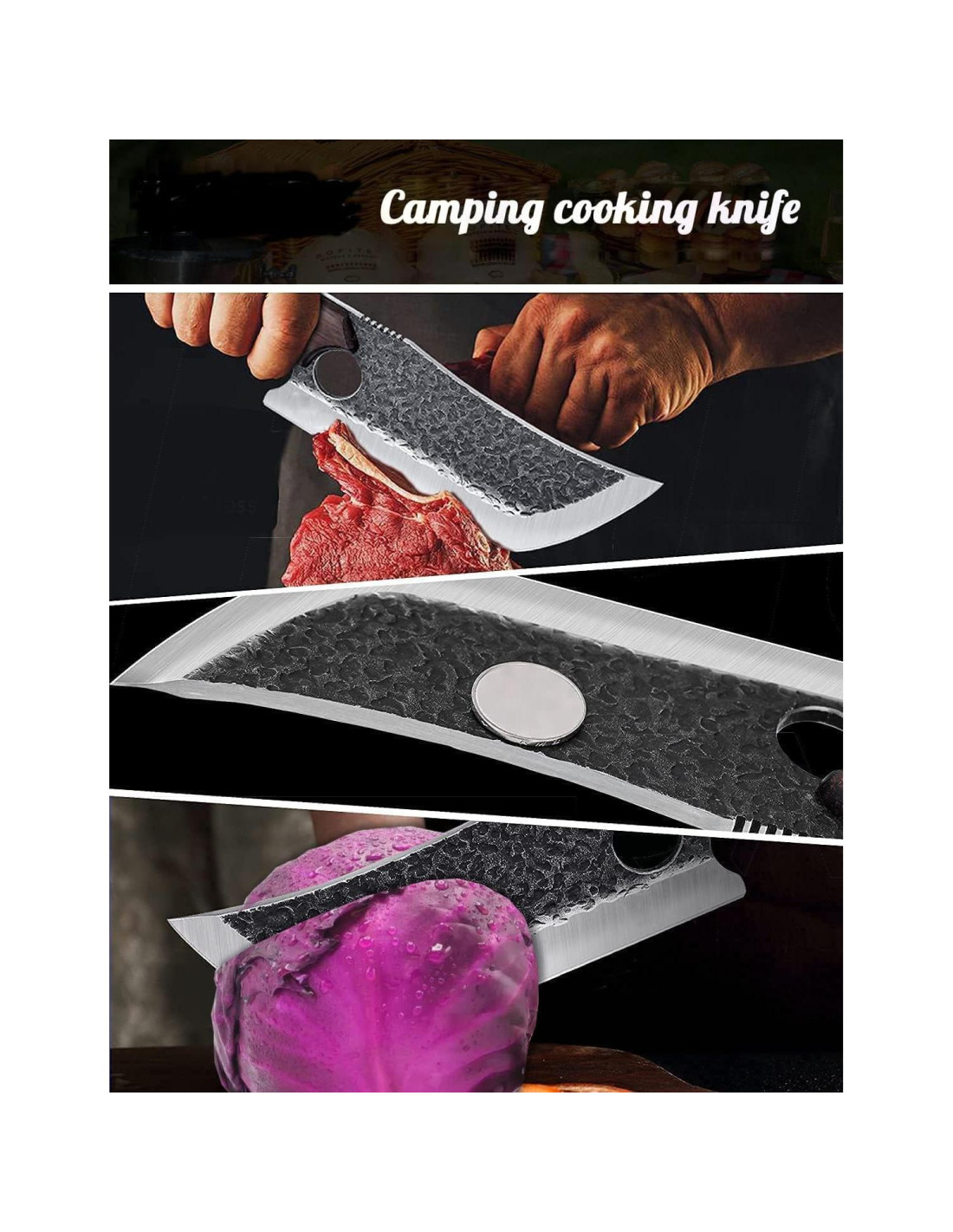 - MEJORA TU COCINA CON UN DISEÑO EXCEPCIONAL: Este destacado cuchillo de carne es uno de los cuchillos más versátiles y esenciales que un chef puede tener. No se desafilará ni astillará y tiene varias capas más de artesanía que los cuchillos de cocina ordinarios, cada una reflejando experiencia. La oxidación y el proceso de martillado le dan al cuchillo un efecto antiadherente, añadiendo al sentido técnico y al valor estético del cuchillo.
