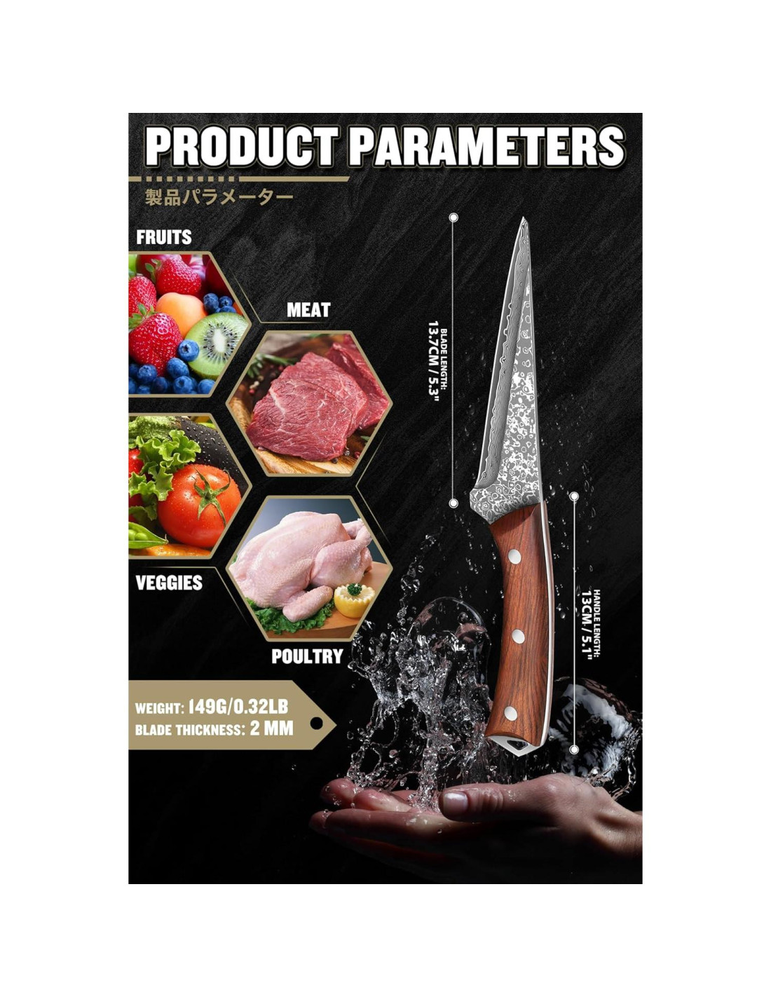- MATERIAL Y ARTESANÍA PREMIUM - Continuamos heredando y mejorando la tecnología tradicional de forja manual, desde el tratamiento a alta temperatura, forjado a mano, temple y afilado de bordes hasta el ensamblaje con mangos de madera. Cada cuchillo de deshuesar ROCOCO es forjado a mano por herreros experimentados con acero de alto carbono premium para asegurar mayor afilado, mayor resistencia al desgaste, durabilidad y dureza. Por favor, límpialo y sécalo después de cada uso para prevenir la oxidación.