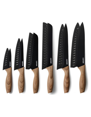 - Fácil de Transportar: Cada cuchillo viene con un protector de hoja para un almacenamiento seguro y compacto en los armarios de la cocina. También es fácil de llevar al acampar y almacenar en una casa rodante.