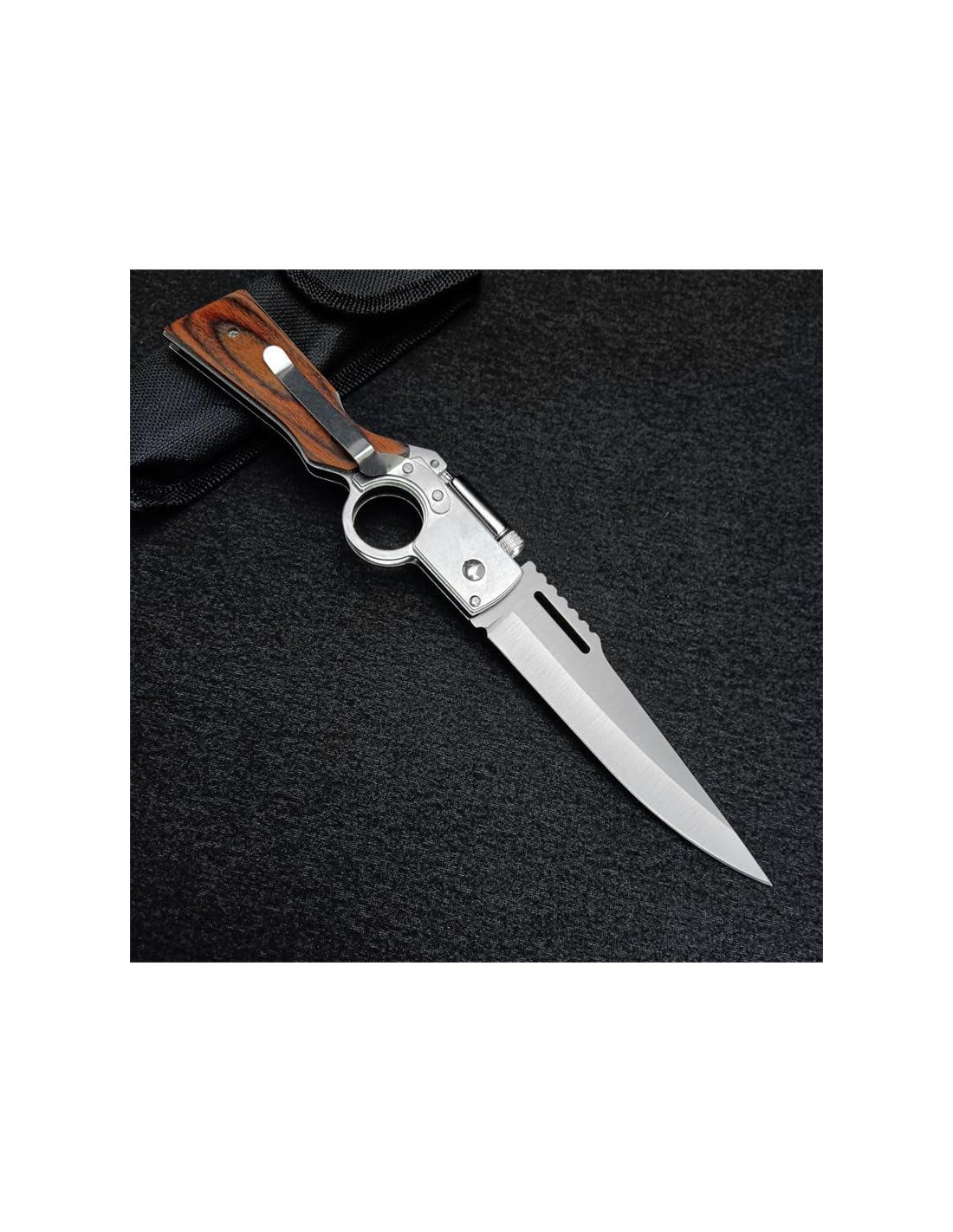 Presentamos el Cuchillo Plegable AK47, su diseño está siempre listo para una acción rápida y confiable siempre que se necesite abrir un cuchillo de supervivencia. Fabricado con precisión y durabilidad, este cuchillo de bolsillo automático es el compañero perfecto para las necesidades de transporte diario de hombres y mujeres. La hoja está hecha de acero 5cr13mov, asegurando una excepcional resistencia y retención de filo, permitiendo cortes y rebanadas sin esfuerzo en cualquier situación. Mango de madera de color con luz LED, que te permite encontrar tu objetivo incluso en noches oscuras. Equipado con bloqueo de seguridad y bloqueo de botón, el cuchillo de bolsillo ofrece una apertura fácil con una mano, lo que lo hace ideal para un acceso rápido y sin complicaciones de manera segura. El clip para cinturón permite un almacenamiento y transporte sin esfuerzo, asegurando que siempre tengas tu confiable cuchillo único a tu lado. Ya sea que estés acampando, haciendo senderismo o en una situación de supervivencia, este cuchillo plegable es la herramienta definitiva para cualquier aventura. No comprometas la calidad o funcionalidad, elige este cuchillo plegable hoy y experimenta la diferencia que puede hacer en tu EDC y actividades al aire libre.