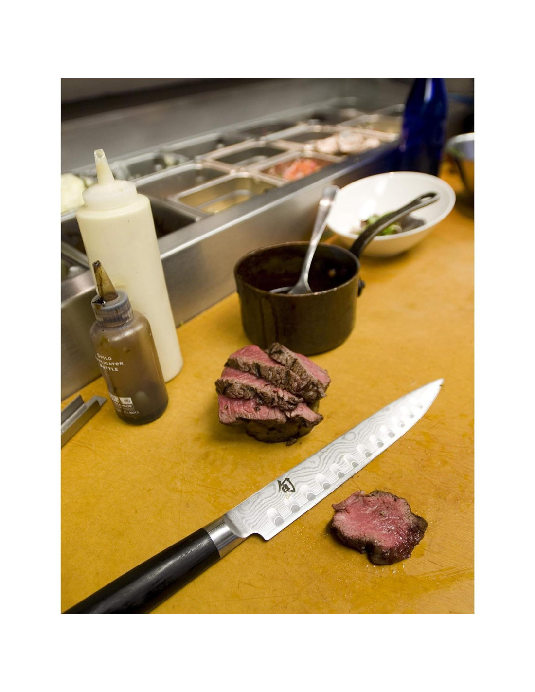 - CUCHILLO LARGO PARA CORTAR: El cuchillo de slicing Hollow Ground Shun Classic de 23 cm está diseñado expertamente con una hoja larga y delgada para cortar grandes trozos de carne en un solo movimiento, manteniendo más jugos y sabor en su interior.