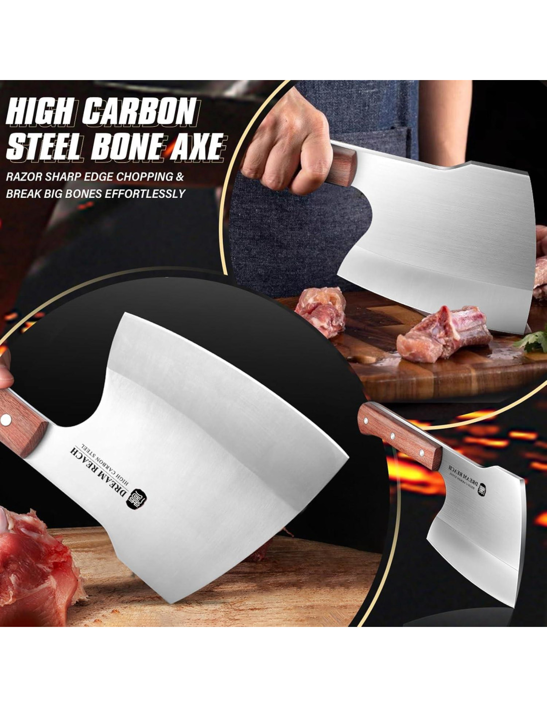 - Cuchillo de Carnicero para Cortar Carne Con una hoja de hacha más ancha y 5mm de grosor, este cortador de huesos es adecuado para la mayoría de los cortes de huesos y carne pesados. Forjado a mano por nuestros artesanos, esta hoja ultra afilada se puede usar fácilmente para picar huesos y cortar carne. Hecho de acero de alto carbono, dureza de hasta 58 HRC, este cuchillo de carne de alta resistencia es estable y duradero.