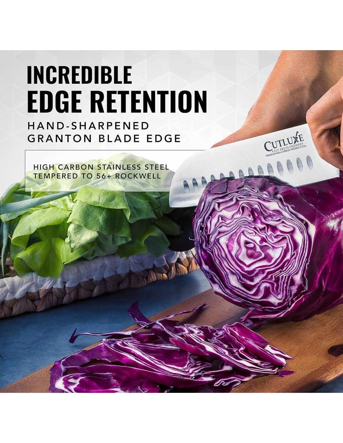 - GARANTÍA DE POR VIDA - Estamos orgullosos de decir que creemos en nuestras cuchillas. Tu cuchillo de chef Cutluxe viene con garantía de por vida contra defectos de material o mano de obra, compra sin riesgo