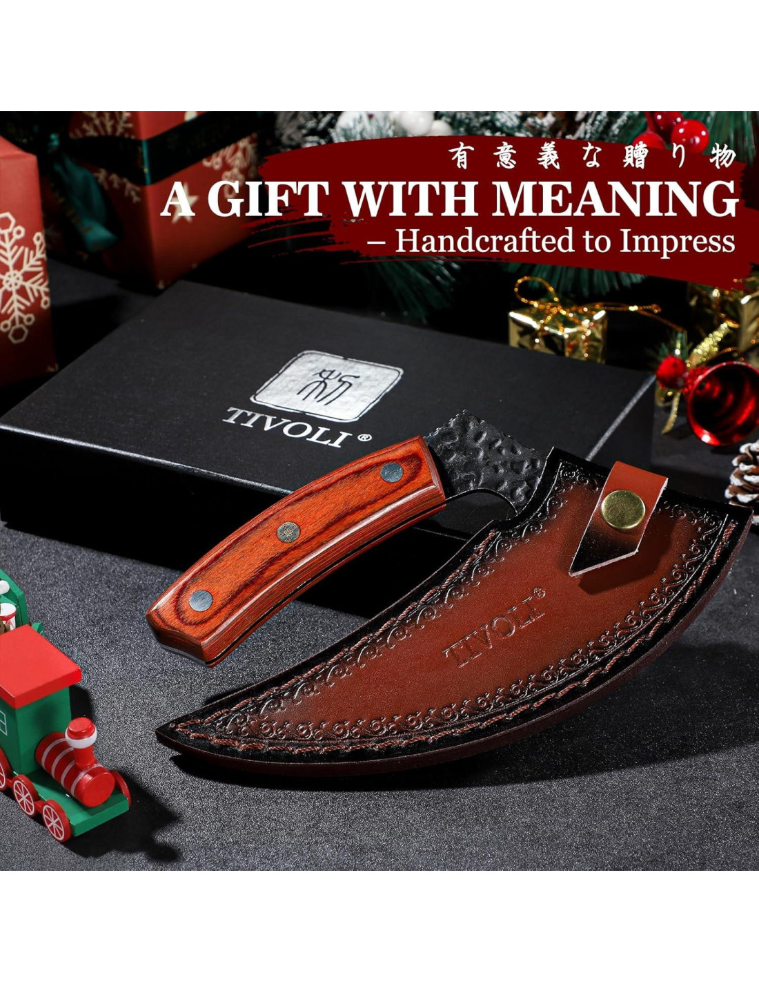 - Un regalo con significado - Hecho a mano para impresionar. ¿Buscas un regalo que realmente destaque? Ya sea para el Día del Padre, un cumpleaños, un aniversario o las fiestas, este cuchillo ulu hecho a mano deja una impresión duradera. Con su carácter forjado a mano, mango de madera rica y diseño versátil, es un regalo significativo que cualquier chef, amante de la naturaleza o aficionado a los cuchillos apreciará. Elegante y listo para regalar.