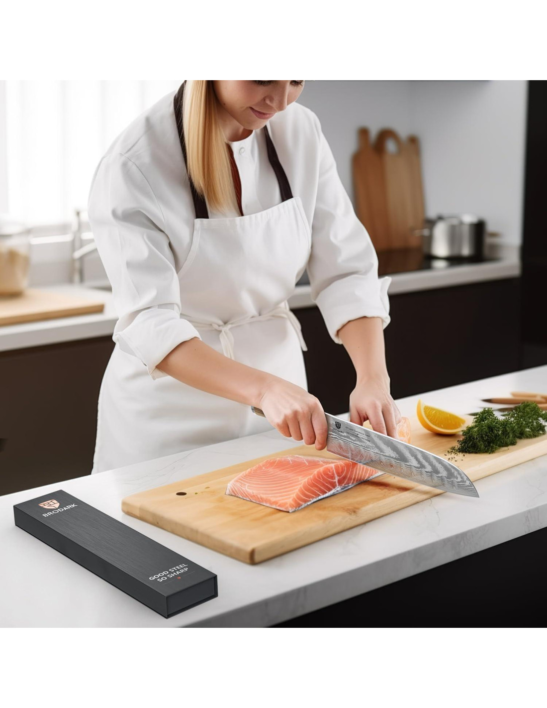 Una artesanía ejemplar que ha ganado una reputación en el mercado y se considera un símbolo de cuchillería de alta calidad. La misión de Brodark es proporcionar cuchillos excepcionales para chefs, ayudándoles a alcanzar su mejor rendimiento. Con 90 años de comunicación profunda con chefs, entusiastas de cuchillos y amas de casa, Brodark ha ganado una reputación en el mercado global de cuchillos. Es ampliamente aclamado entre chefs y entusiastas de cuchillos, siendo reconocido como un símbolo de cuchillos de alta calidad. Brodark se compromete a ofrecer la mejor experiencia de cuchillo a sus clientes. Despierta la creatividad de tu familia con regalos que inspiran imaginación y encienden nuevas pasiones. Libera su potencial. Todos los cuchillos producidos por BRODARK han obtenido la certificación de seguridad NSF (Fundación Nacional de Saneamiento). Puedes usarlos con confianza. Nuestro servicio postventa proporciona soporte en línea 24/7. En caso de cualquier problema de calidad, ofrecemos una política de reemplazo en lugar de reparaciones. Tu compra única asegura un servicio de por vida.