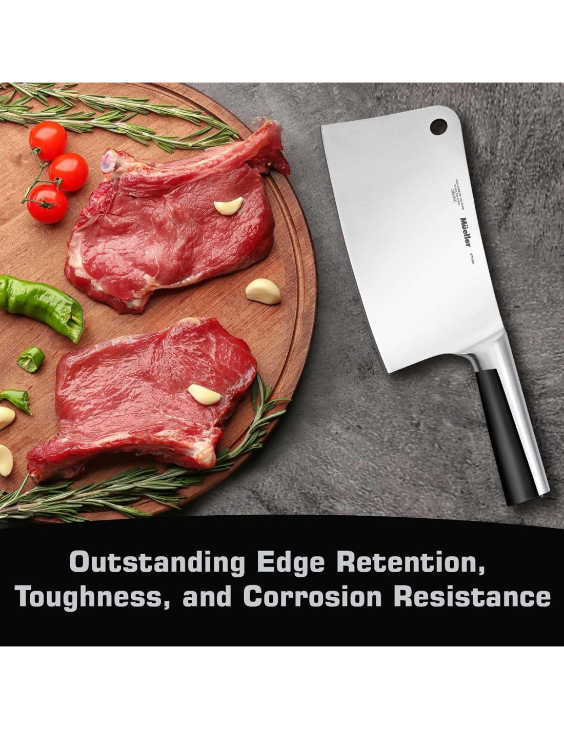 - Durabilidad y Calidad Premium - El cuchillo cleaver super afilado está hecho de acero inoxidable de alta calidad que resiste la oxidación, corrosión y decoloración, se afila rápidamente, es fácil de limpiar y mantener.