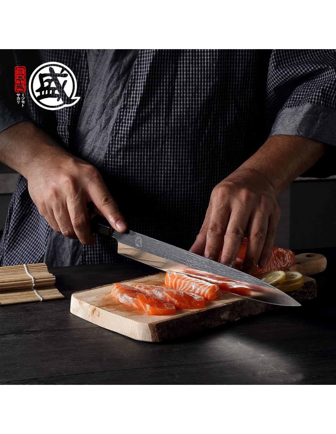 - RENDIMIENTO CULINARIO VERSÁTIL: Más allá del corte de pescado crudo, este cuchillo Yanagiba maneja sin esfuerzo hierbas suaves, rollos de sushi y elaboradas guarniciones de frutas. Un imprescindible para los amantes del sashimi y entusiastas de la cocina japonesa que buscan precisión y elegancia
