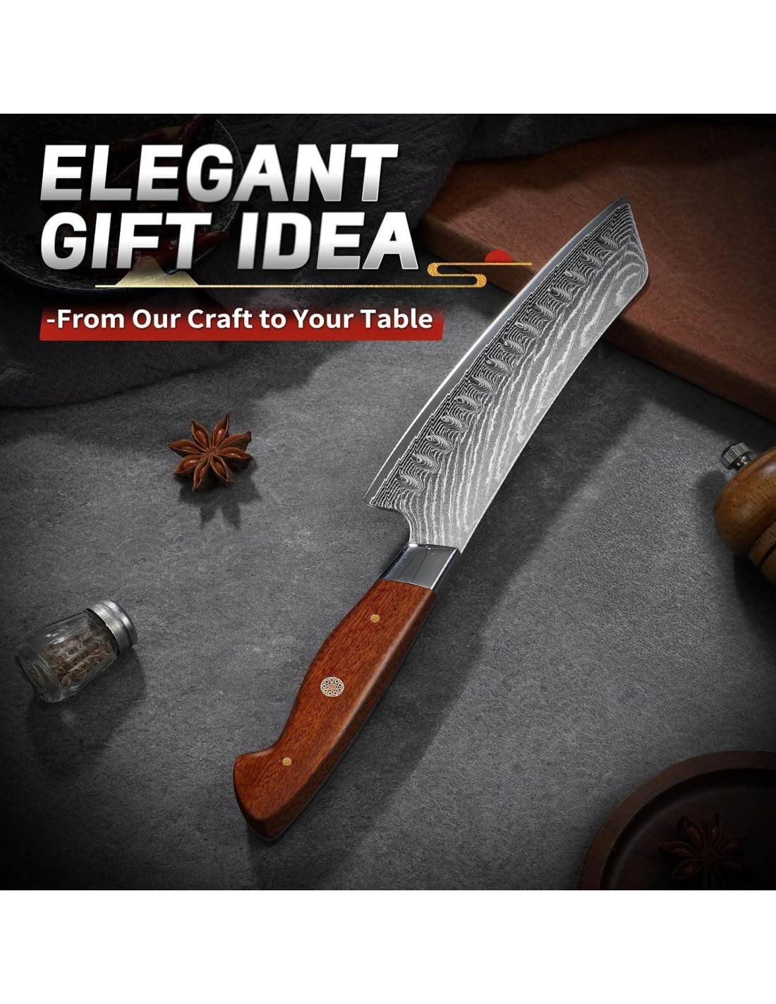 - Regalo Perfecto para Cada Amante de la Comida: Envuelto en una elegante caja de regalo, este cuchillo de chef profesional es un regalo inolvidable para cualquier fanático de la comida. Ya sea una festividad, una inauguración de casa o una barbacoa en el patio, este cuchillo japonés es el tipo de equipo que hace que la gente hable.